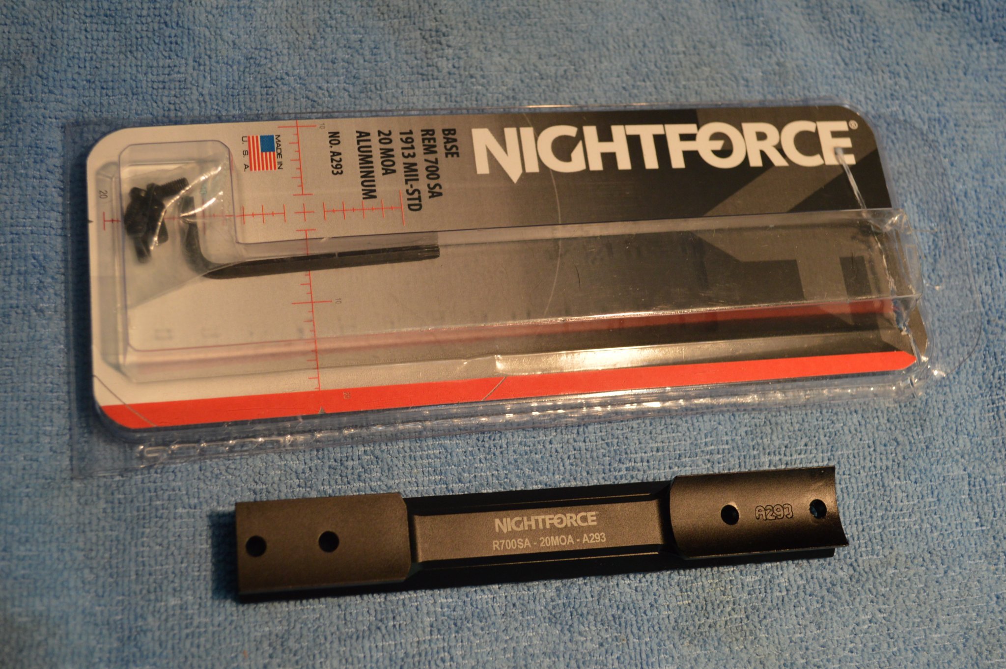 Clearing some stuff out. Looking to sell a Nightforce 20 MOA standard duty base for Rem 700 SA. Nightforce SKU: A293 This base was mounted on a spare rifle but received very little use. The base was not epoxy bedded. The base is in excellent condition with mounting screws and allen key in original packaging.