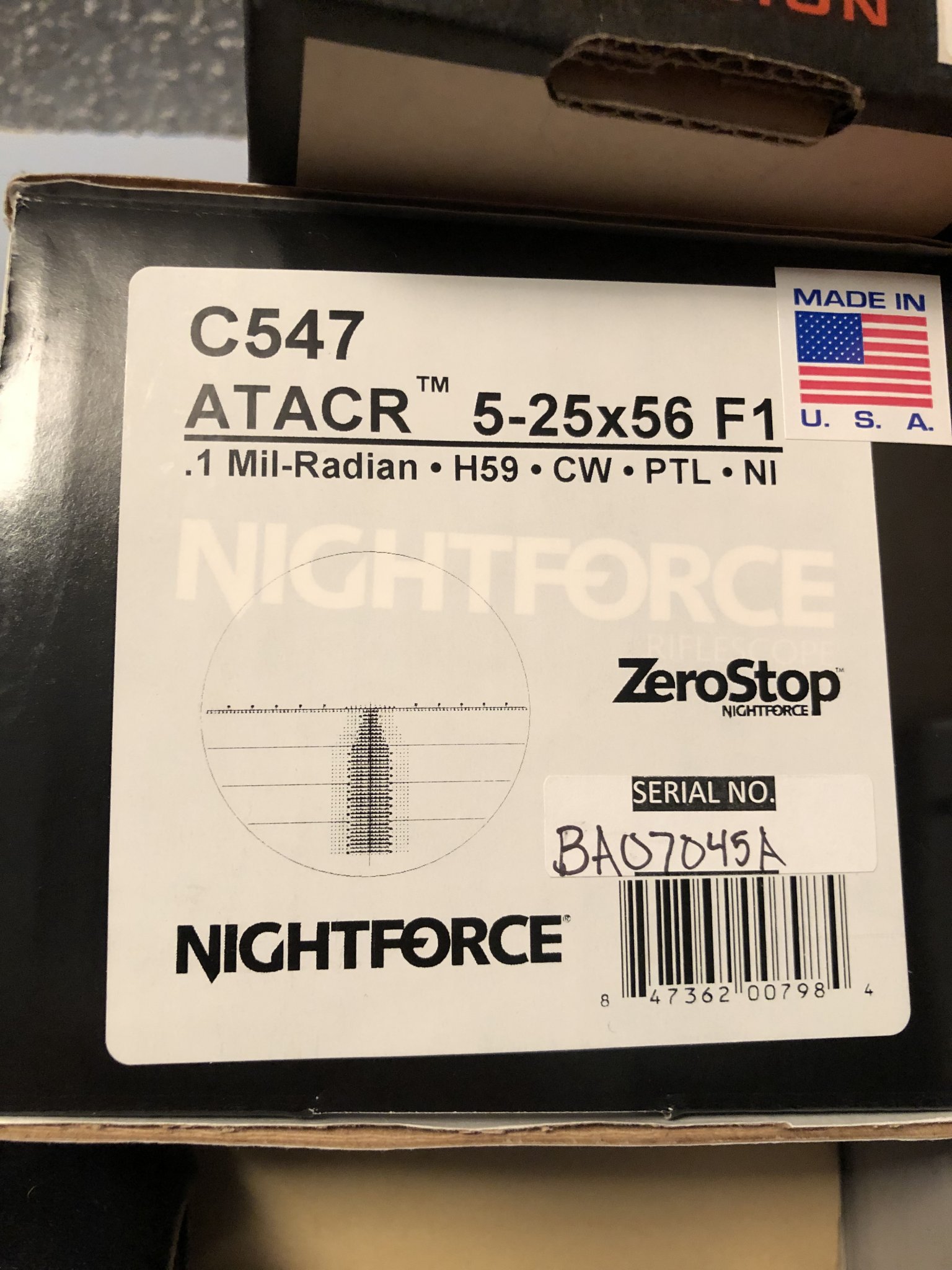 I have another NF 5-25 F1 ATACR w/ H59 reticle that I do not need. This scope functions flawlessly in every way. It has been used in matches and does have minor cosmetic blemishes in places as any scope should if you actually use the damn thing. Glass is perfect. Comes with the box, papers, flip caps, etc.....