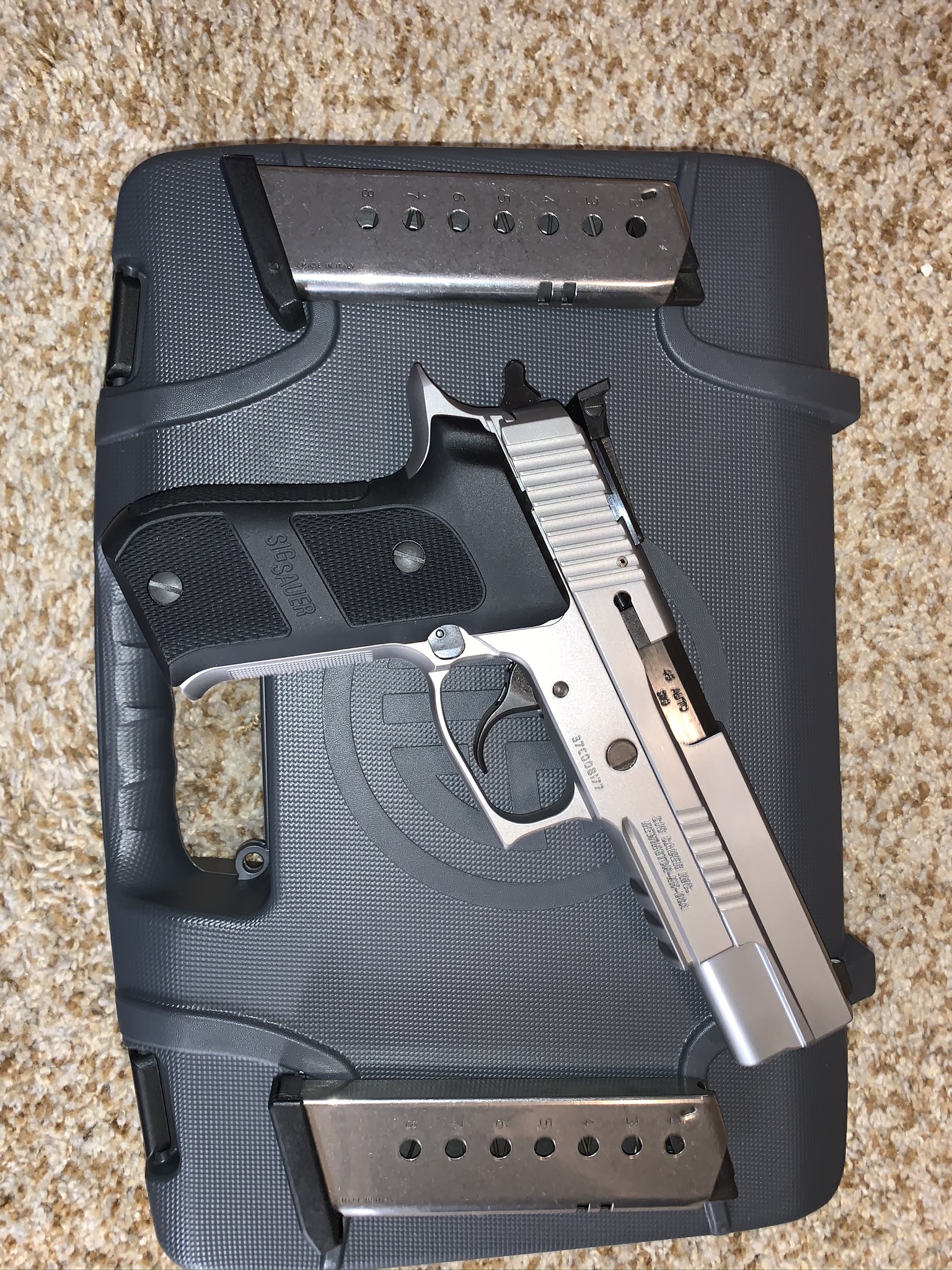 I have a beautiful factory new, unfired in box 45 ACP Sig P220 match stainless elite. It has the extended beaver tail, g10 grips, adjustable sights with tritium front post black rear and longer barrel. This will be a collectors item since they are currently not in production. I am asking $1,250 shipped at my cost to USA address. Comes with original box, 2 eight round magazines and all original accessories (lock, chamber flag, manual).