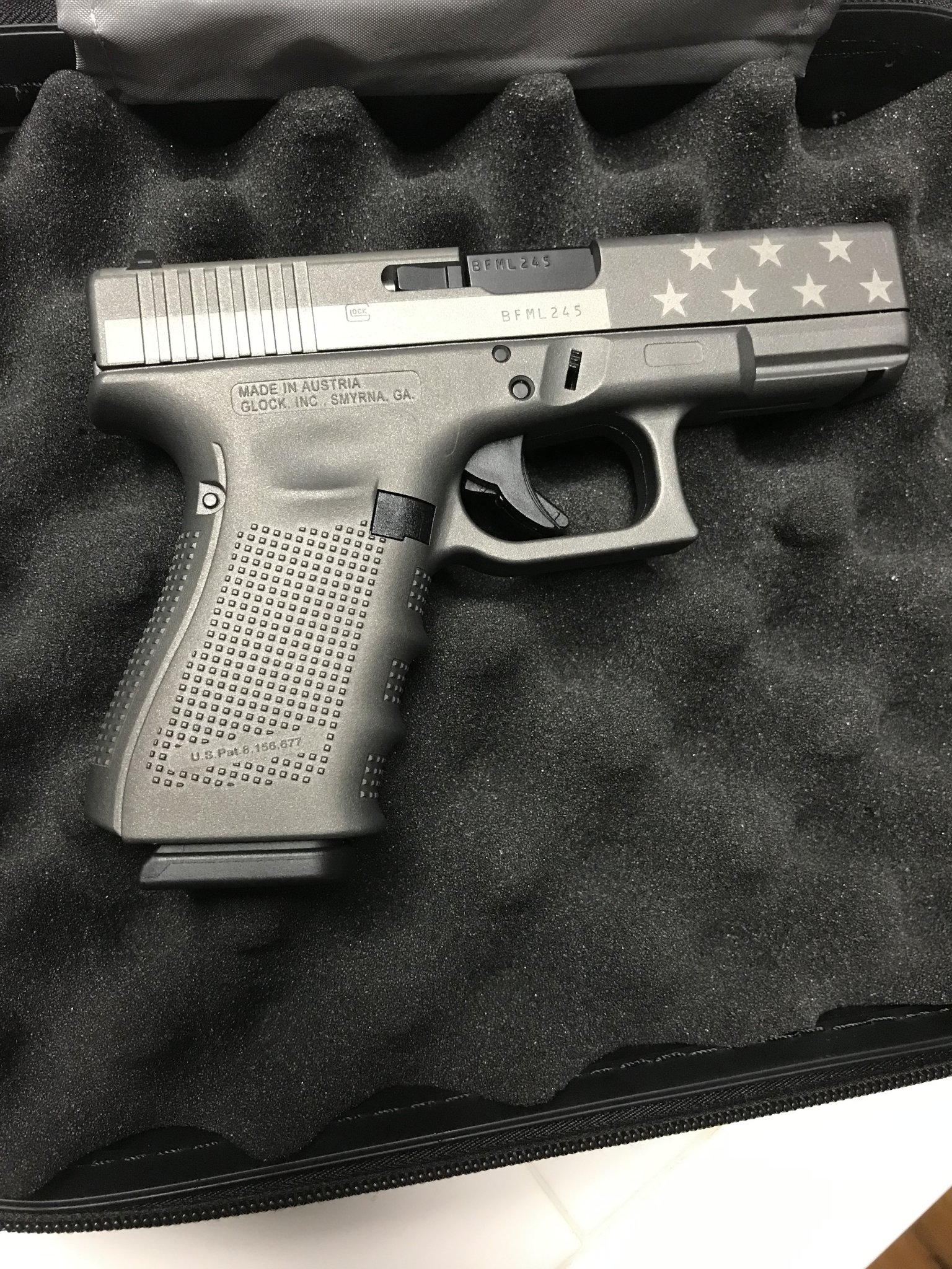NIB Glock 19-grey American flag. Comes w case and all accessories. Will take money order, cashier check, or hold personal check til clears. $550 shipped conus.