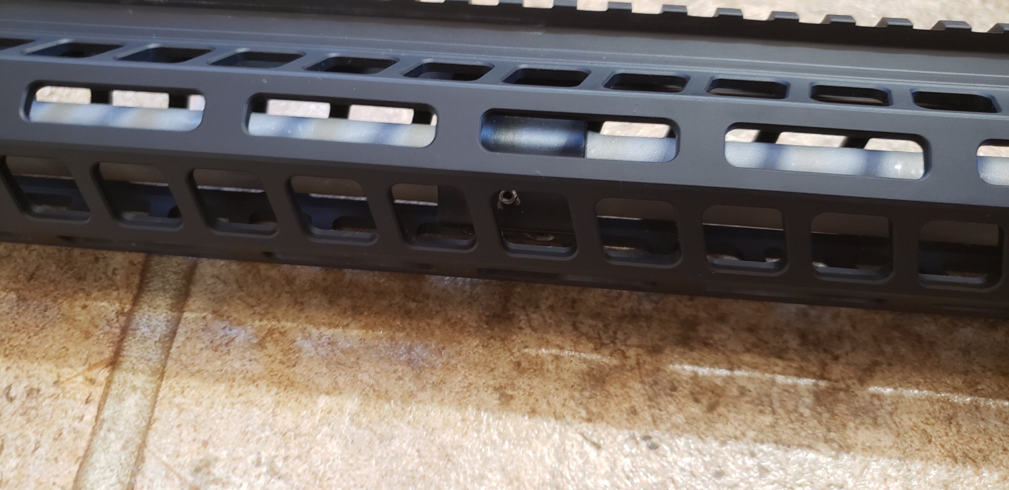 Very small Mark's on top rail from mounting a light and front sight. Upper is unfired