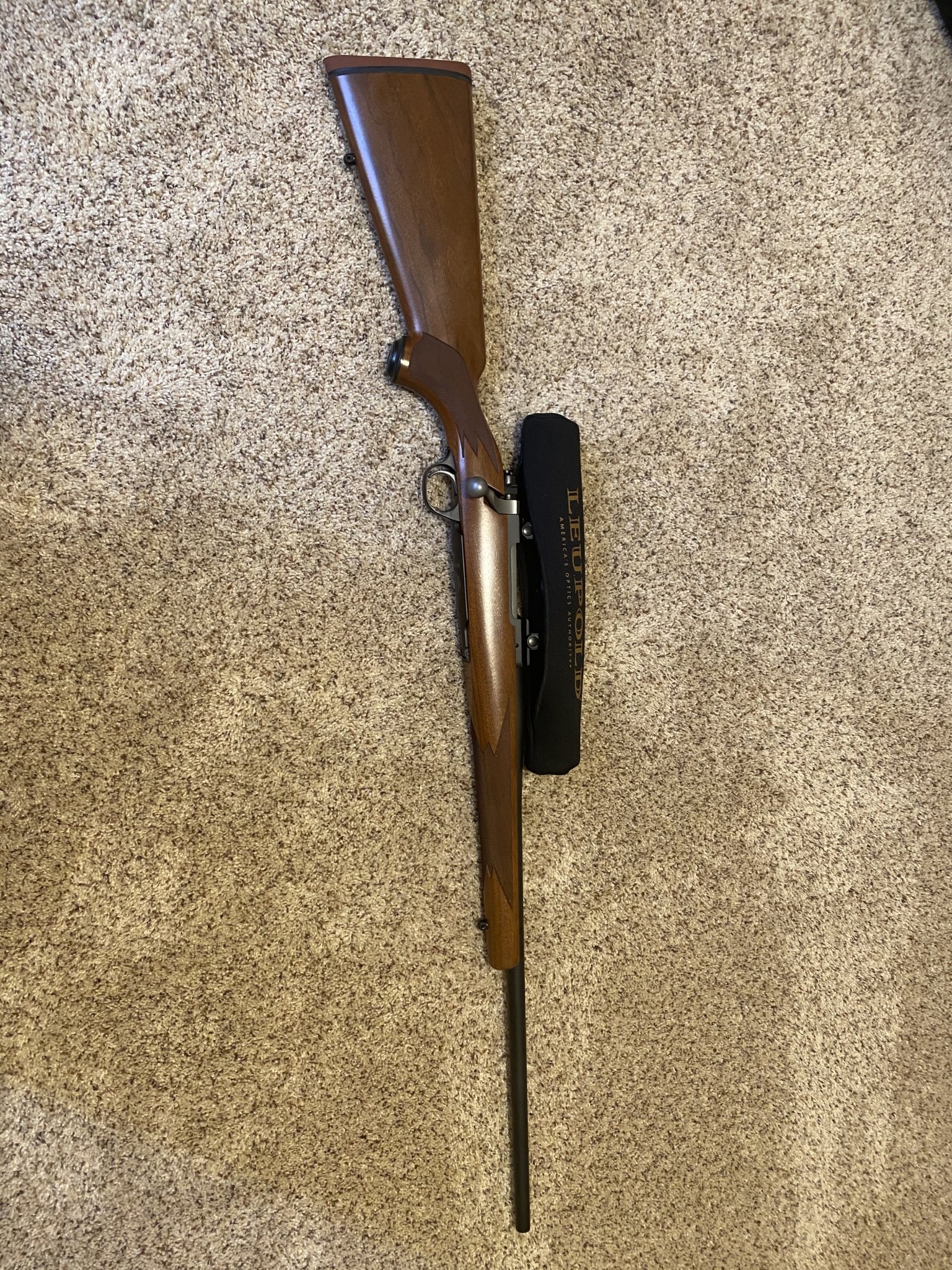 The rifle has exactly 35 rounds through it and was only taken out shooting once, it has since sat in a hard case or my safe. I intended to take it coyote hunting but I was too worried I’d scratch up the pretty wood finish so I never used it. It doesn’t have a scratch or a mark on it that I can find.
