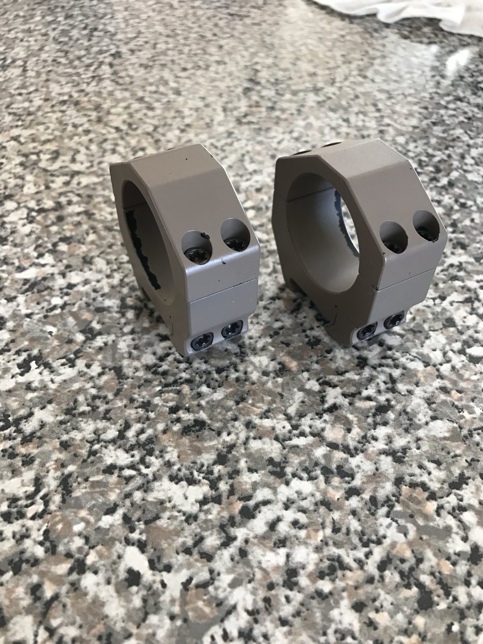 Seekins 34mm low rings that are are Cerakoted coated FDE. Used on my old Premier Scope for a few hundred rounds of been in a drawer ever since. SOLD SOLD SOLD in the Continental United States