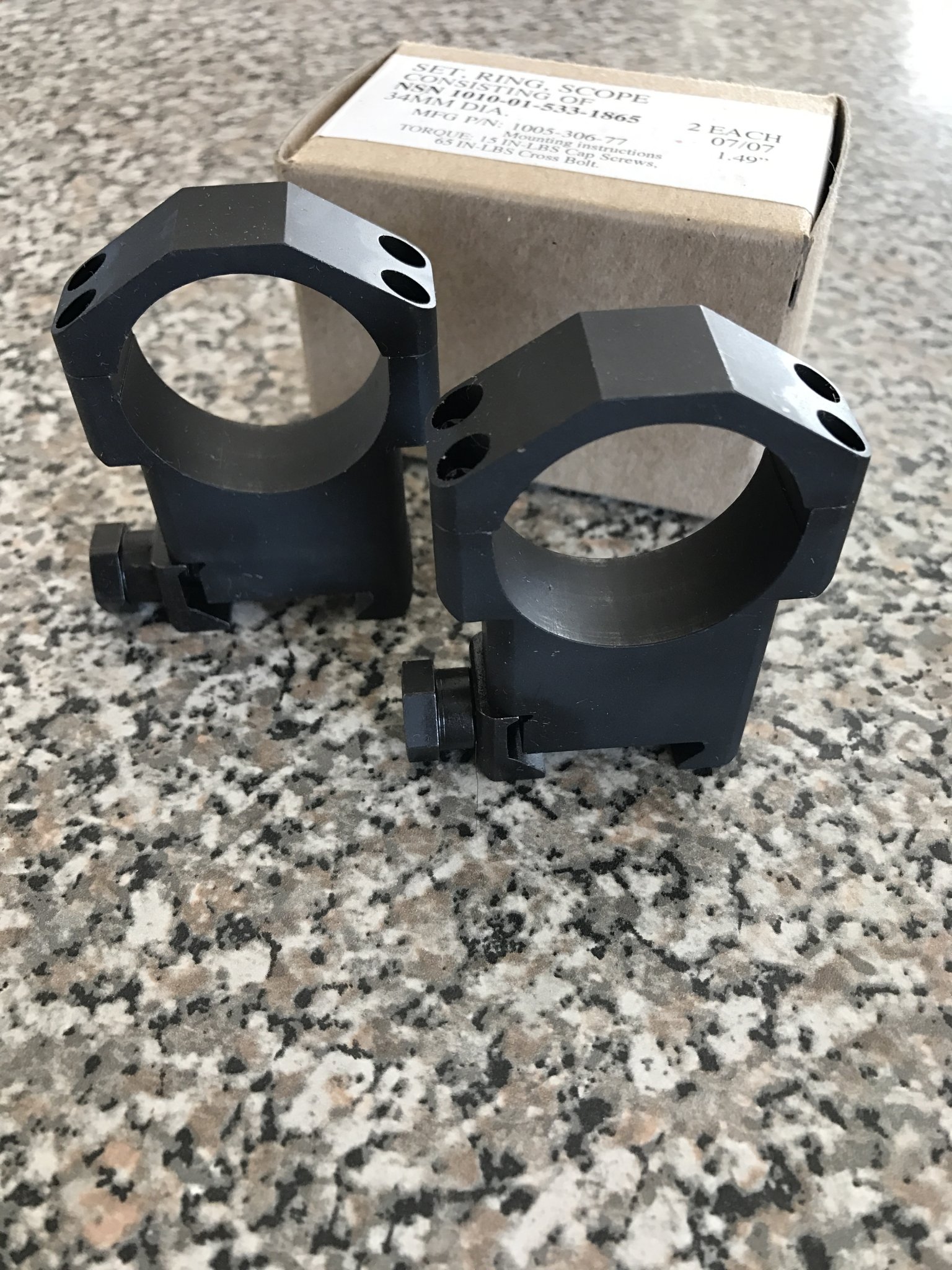 Badger Ordnance high 34 mm scope rings that have only been mounted one time for testing, never shot. $SOLD shipped in the Continental United States