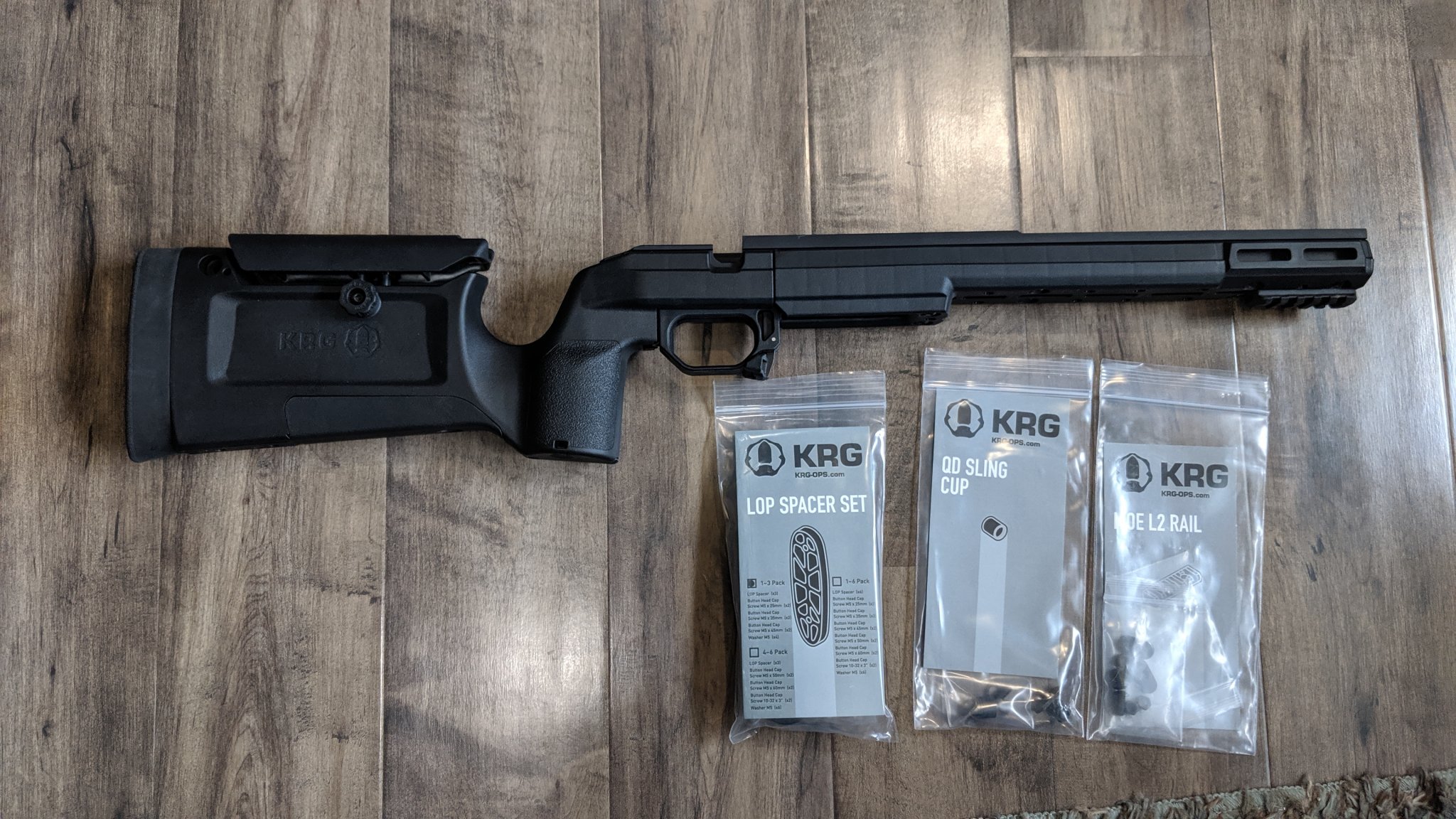 Bought this brand new unused as a take off from a PVA rifle from another hide member. It's new unused. My manners is coming and I dont have a need for this right now. Includes all new used hardware and spacers. Just as you would get from KRG.