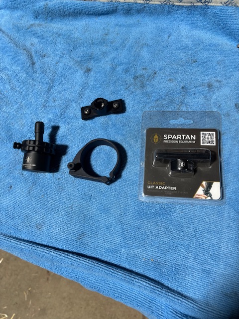 Spartan Precision Davros tripod head, MLOK adapter, binocular adapter (size 1), and Anschutz adapter. $100 for all 4. Anschutz and binoculars adapter are new. The other two are used but in excellent condition.