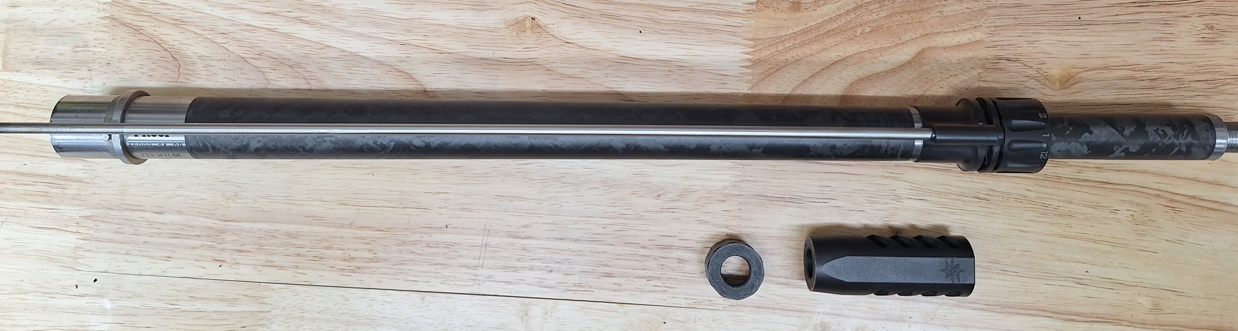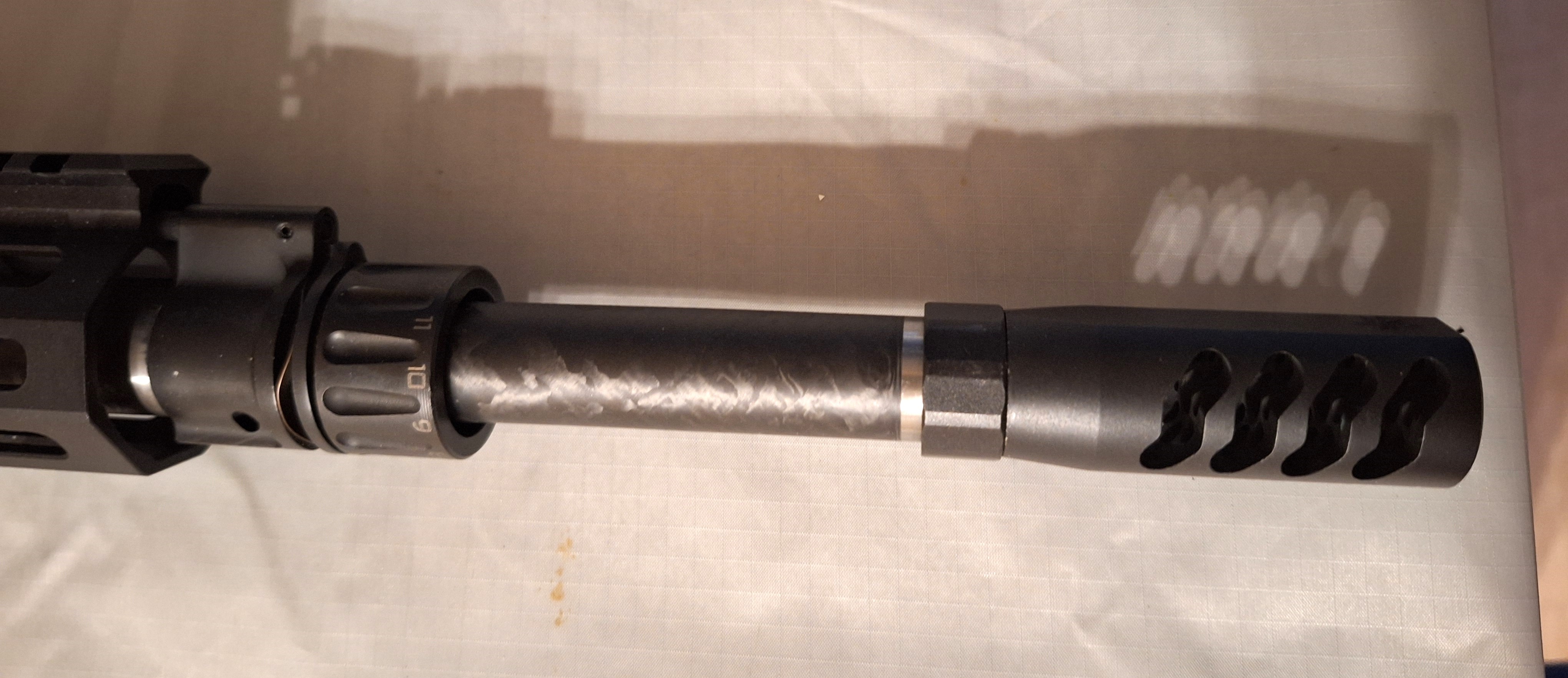 I am thinning out some stuff due to age and just too many things.18" Proof Research Carbon Fiber bbl(Rifle length gas port), 1 in 8 7twist with Wylde chamber.Riflespeed adj gas block,and Seekins . brake. The barrel has no more than 200 rds of slow fire thru it. It is very accurate as You would expect and soft shooting.The barrel has some scratches on the exposed steel from removing/installing I have been on the Hide for over 10 years and have over 180 A+ rating on Gunbroker. $475 plus $25 for insured shipping. You are welcome to pick it up in NW Columbus Oh. I removed the Colt upper and hand-guard to cut the cost. (SOLD to Jon)