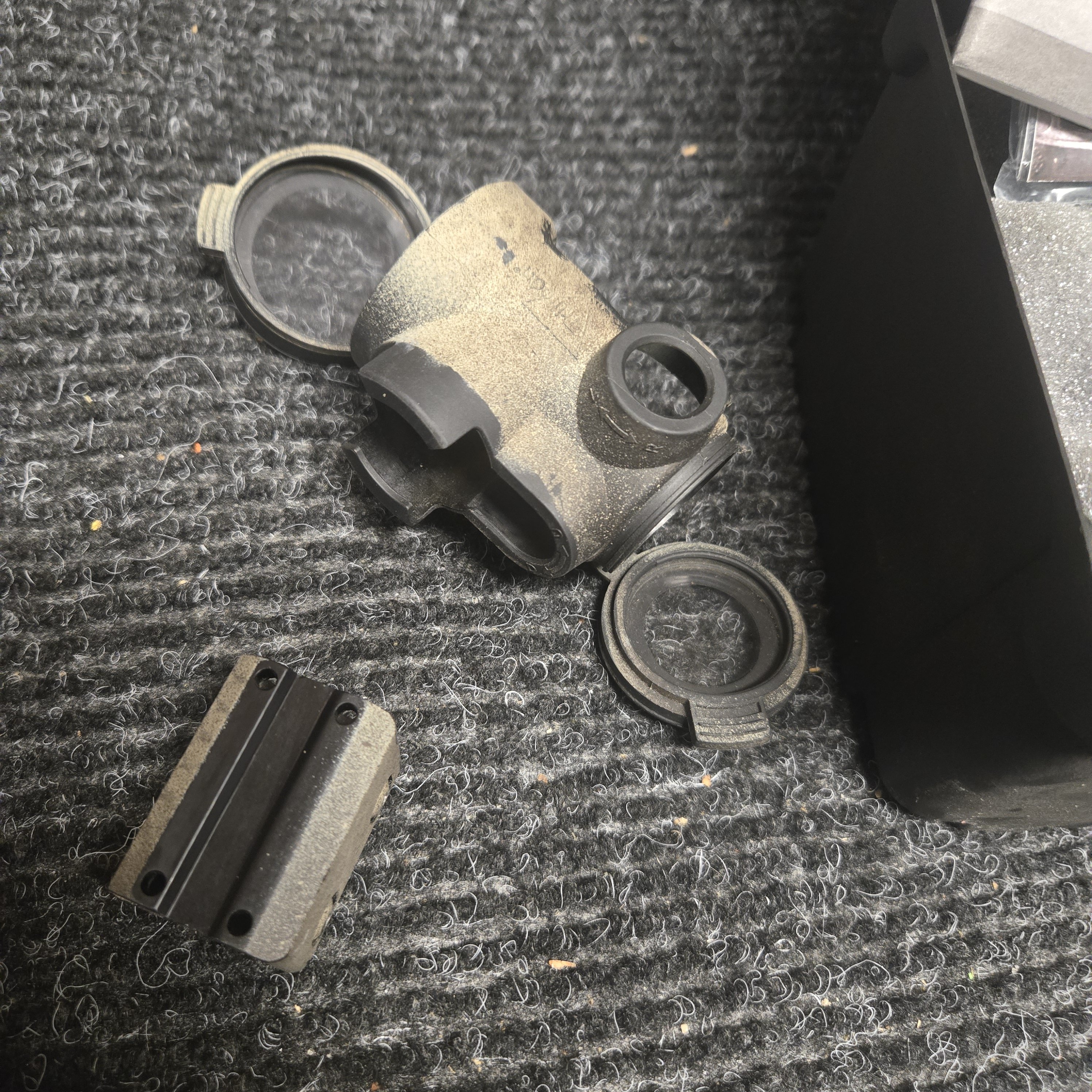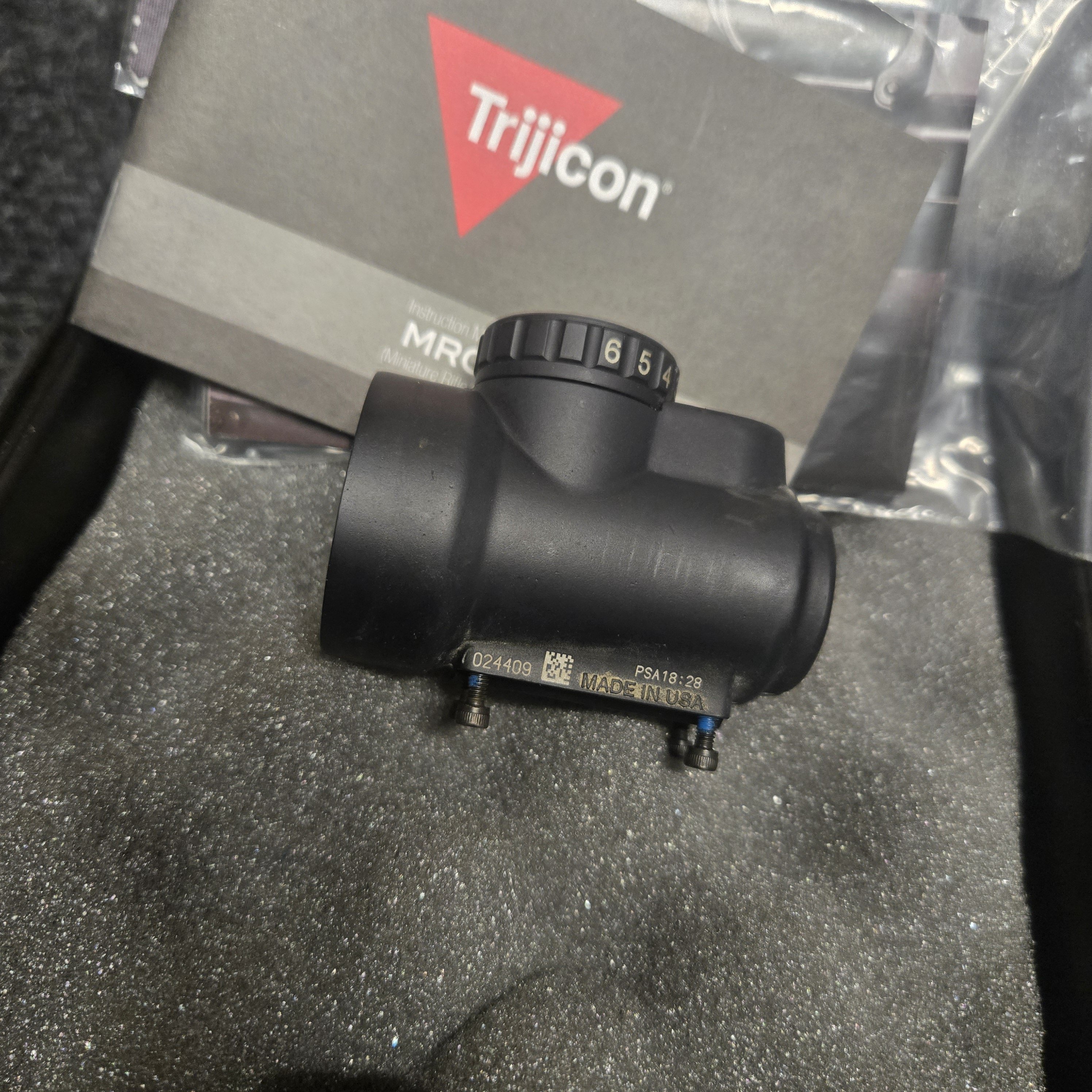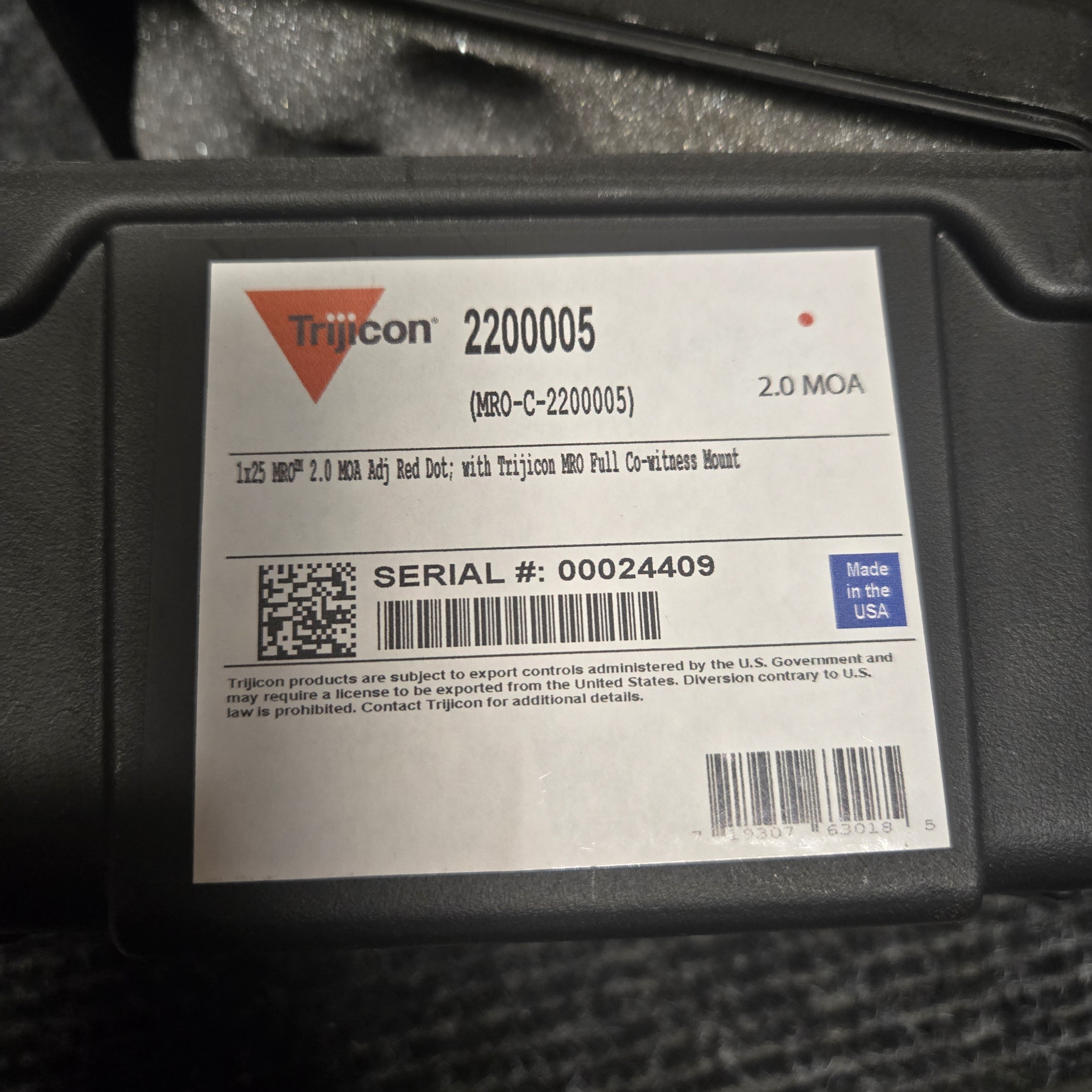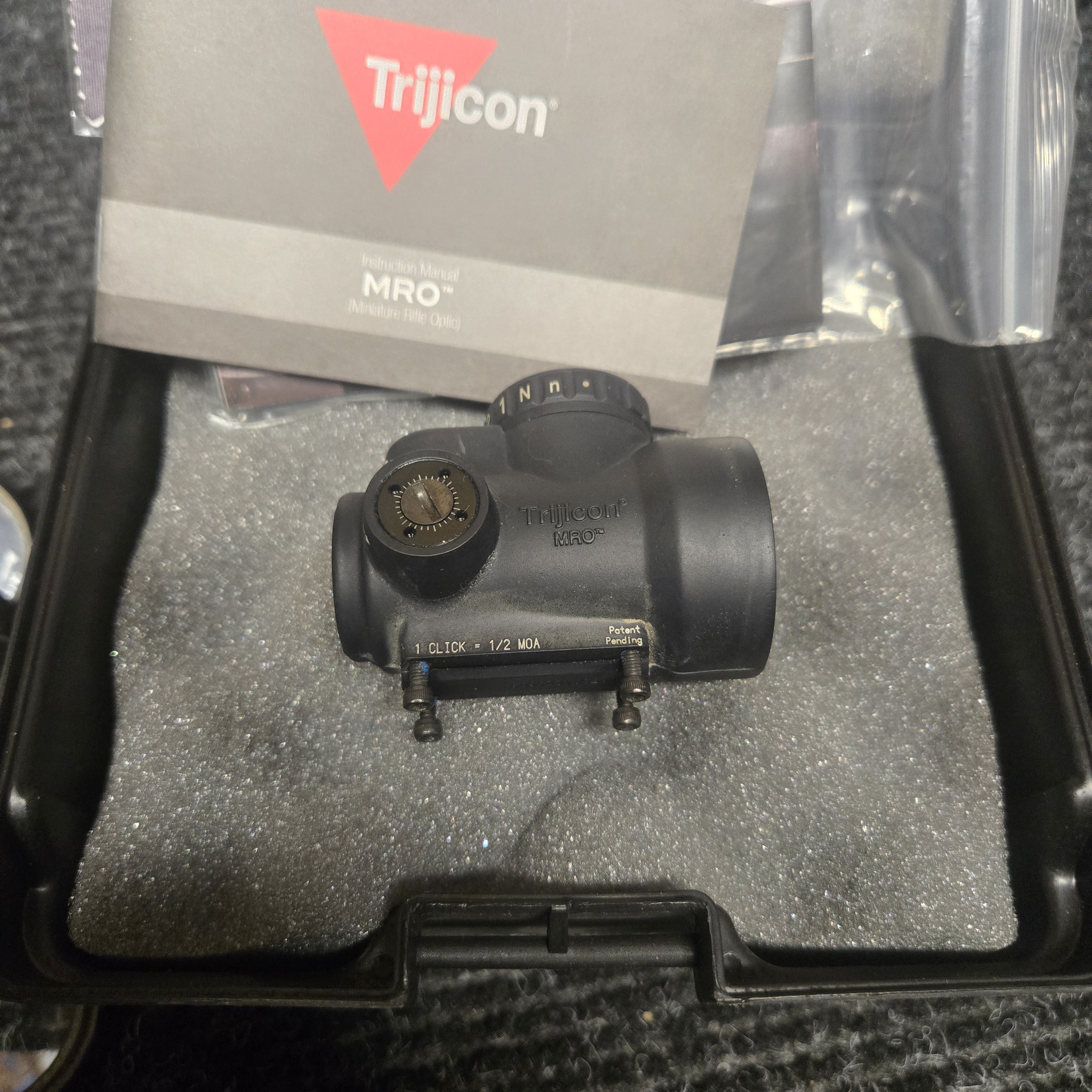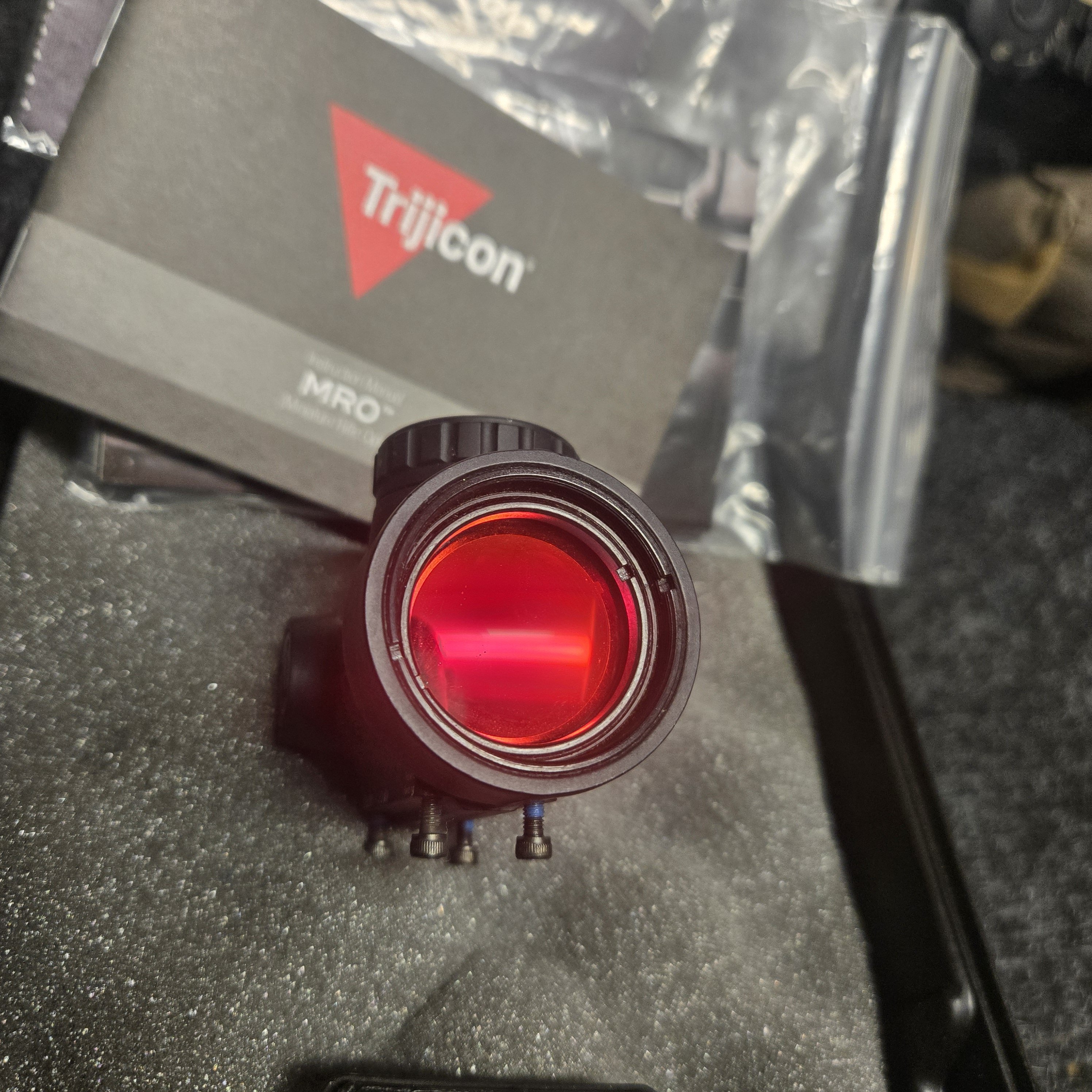 Up for sale is Trijicon MRO Red Dot with tall base and painted rubber cover. Box, manuals include