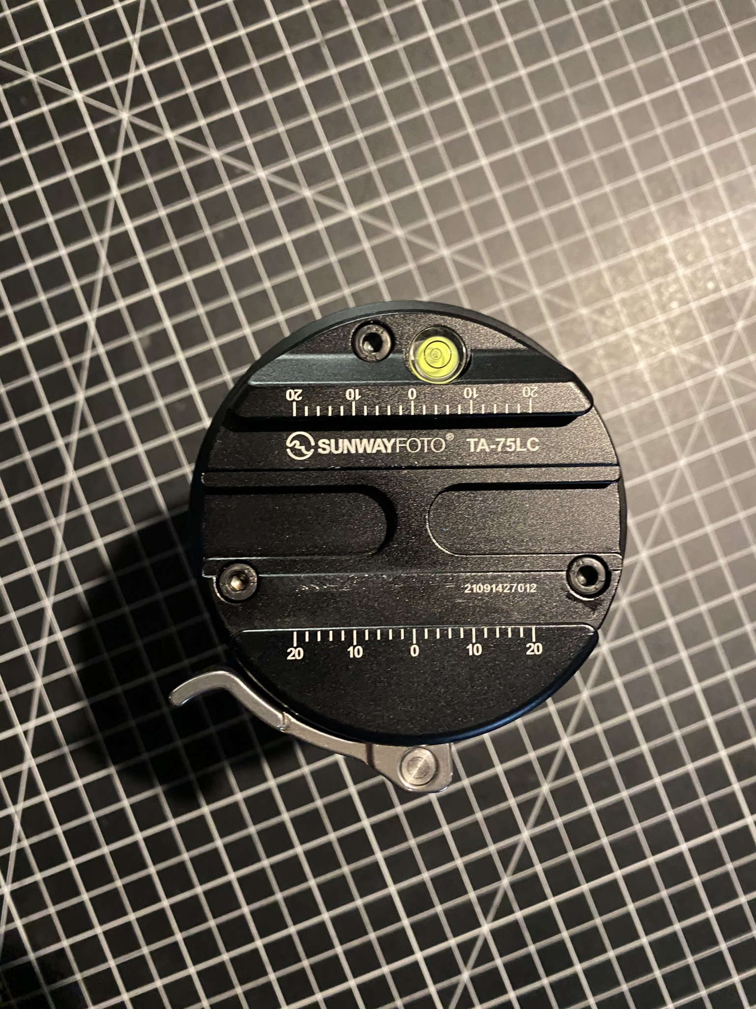 Sunwayfoto 75mm half ball TA 75LC with 3” ARCA clamp for shooting.