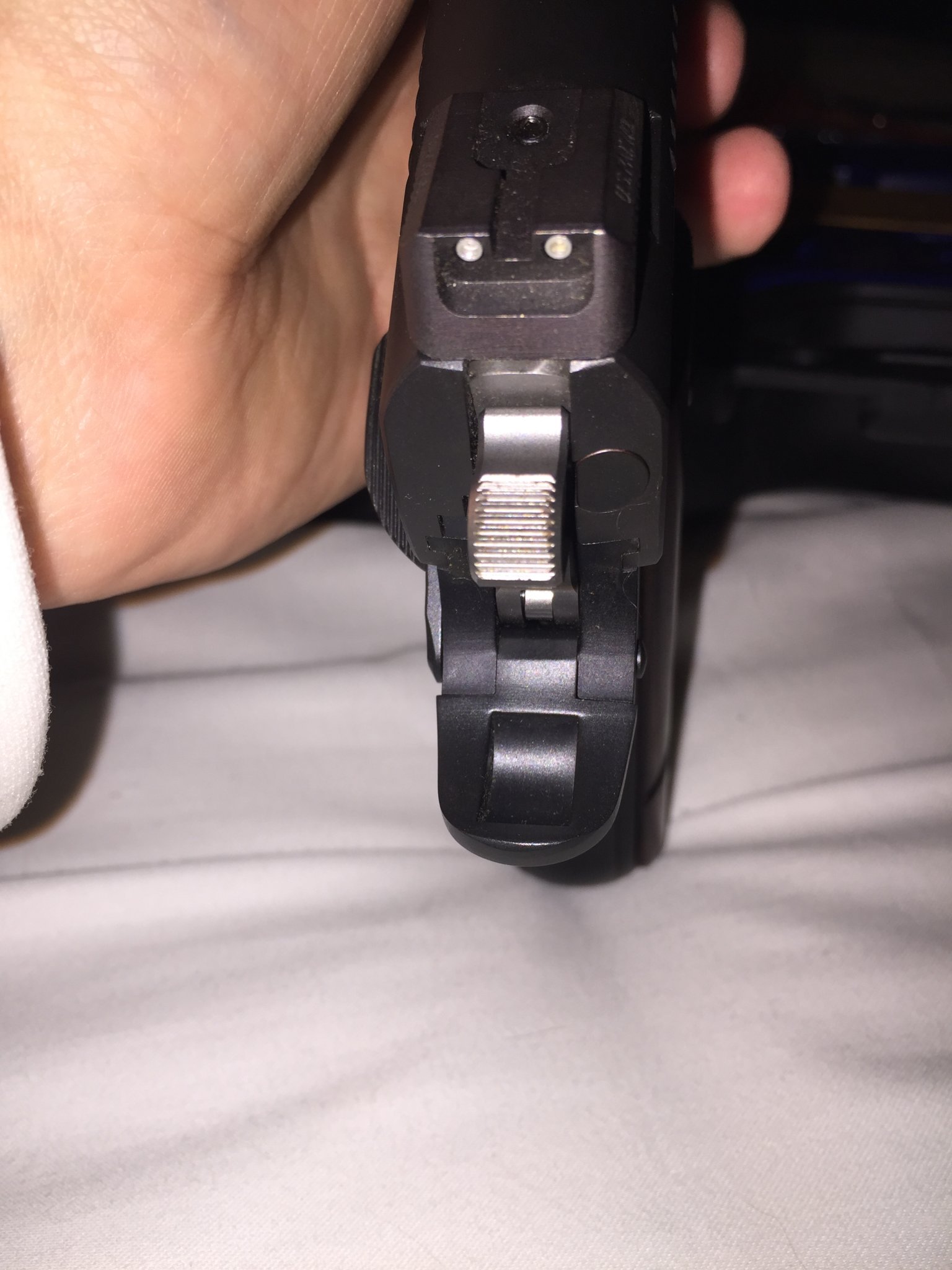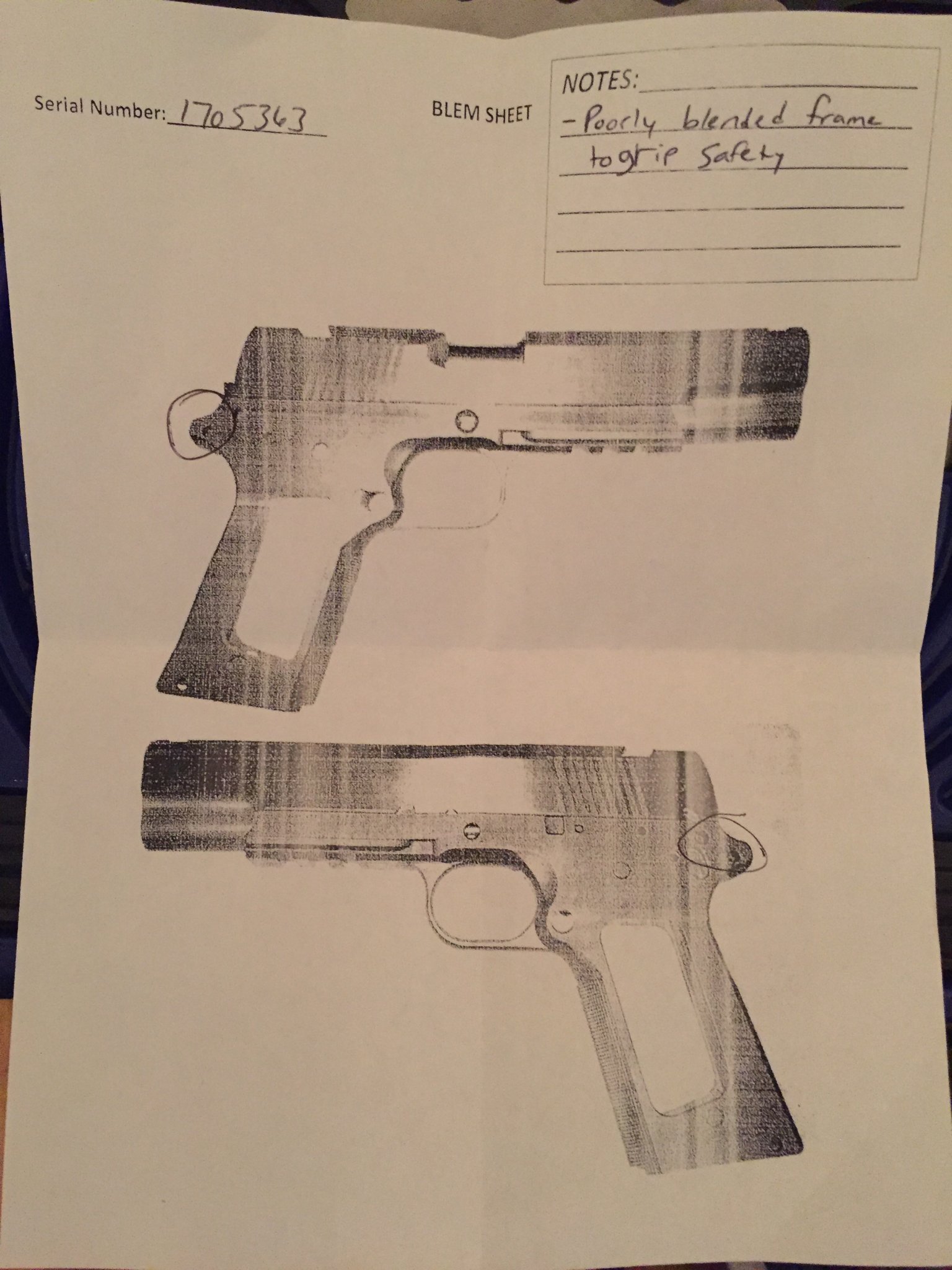 Trump bucks anyone? Marked a blemished model because the grip safety wasn't fully blended flush with the frame. I tried to capture it as best I could with my phone.