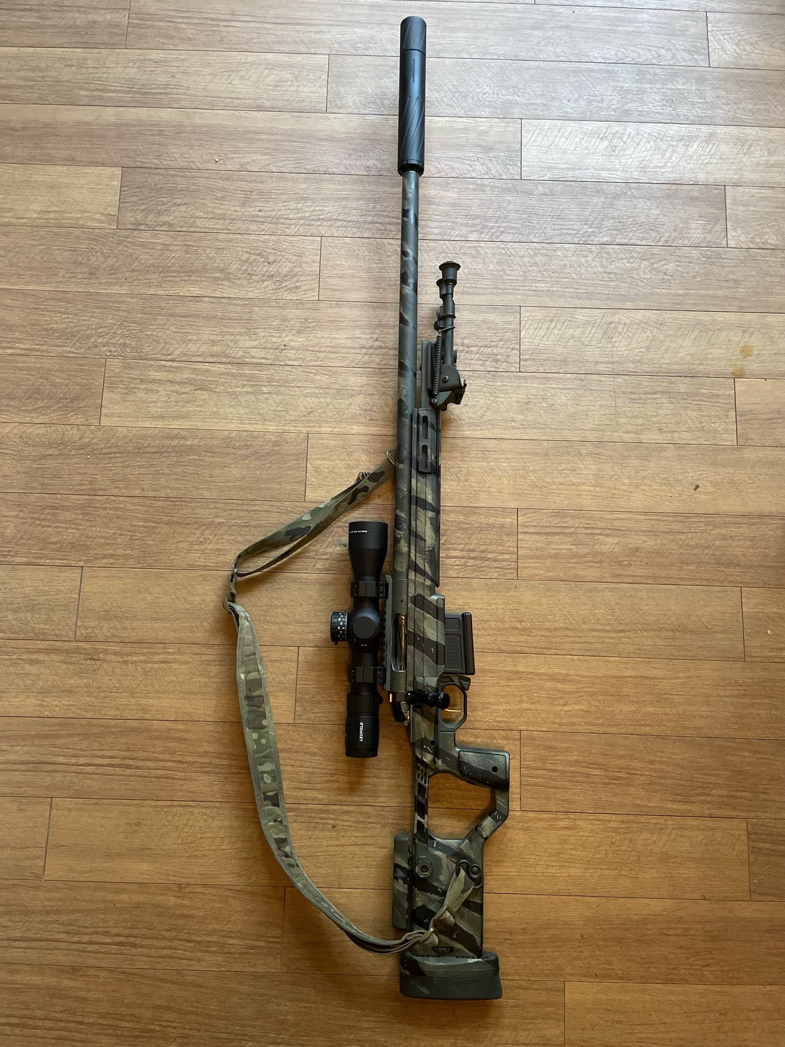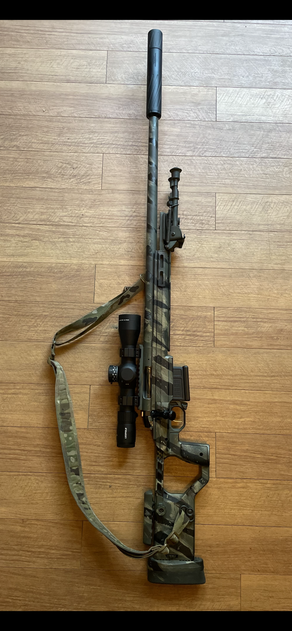 Rattle canned Tiger Stripe, included will be a minimalist spigot mount and Harris bipod. In great condition. Ships with the Action screws included.
