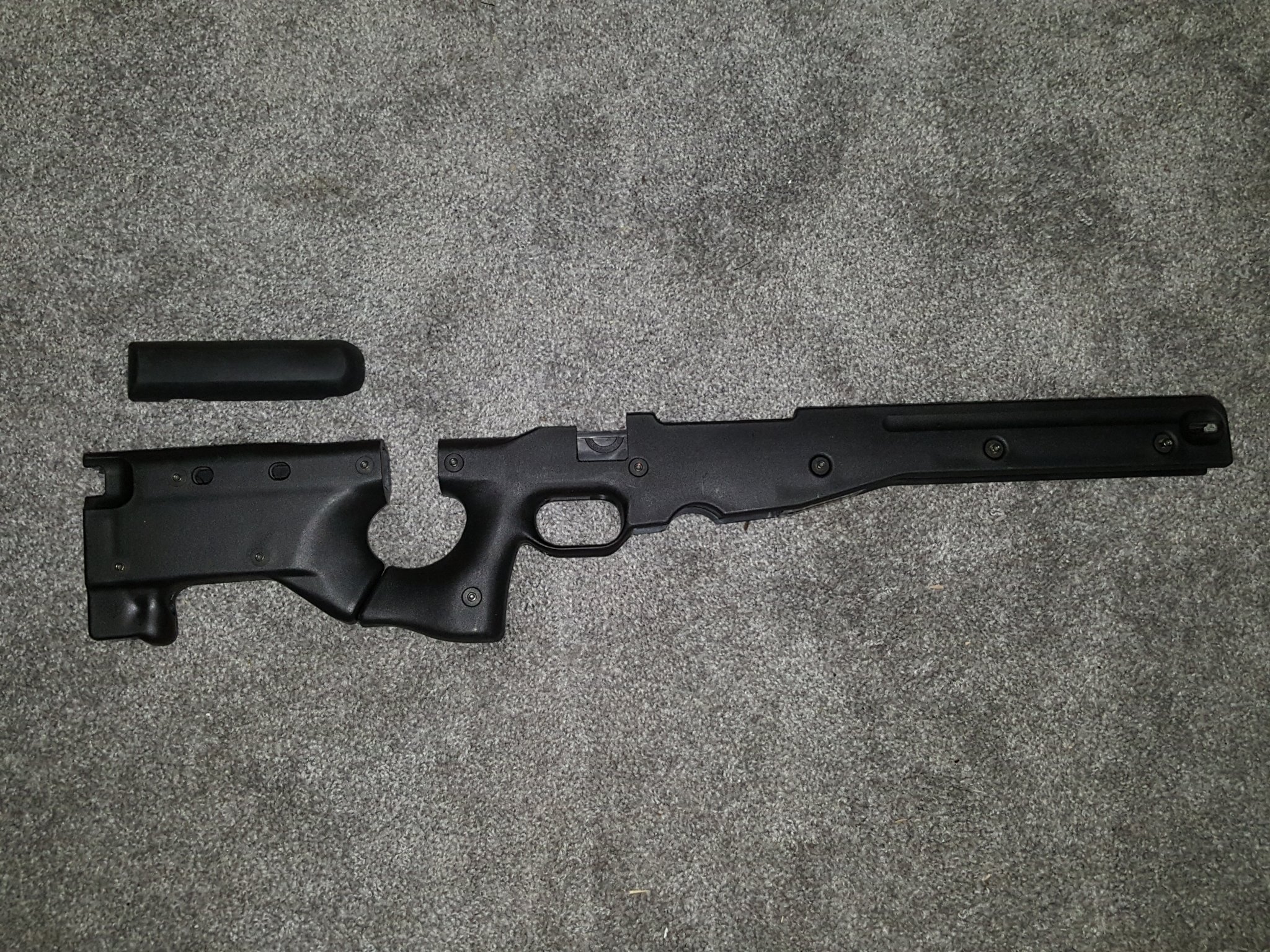 Selling a set of factory black skins for a SHORT ACTION 2.0 with screws and a victor co rubber cheek piece 120$ shipped