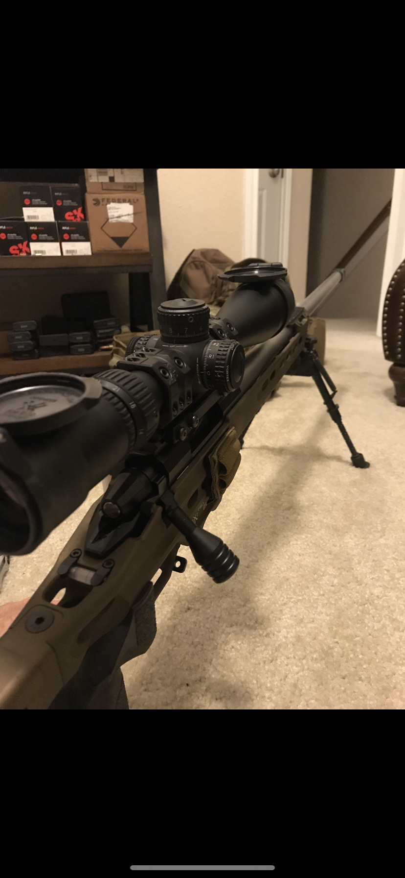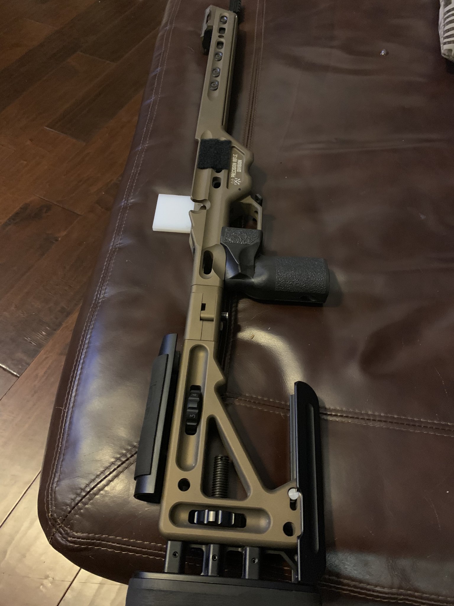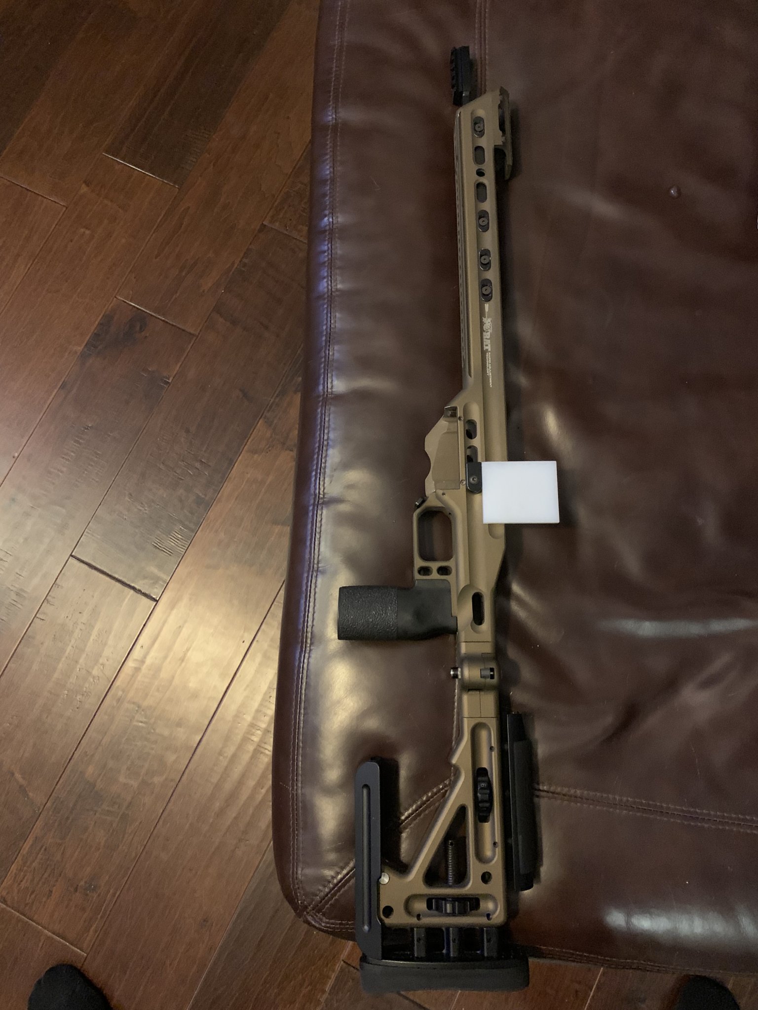 Excellent condition. Newest model with castle cut, newest replaceable bubble level, and newest folder mechanism (upgraded). Will come with a MPA data card holder (has been JB welded in place so it will never pop out/come lose on you), 2 upgraded stainless action screws and nord lock washers. This is the more expensive folder model with the newest version of folder (locks up tight with 0 play whatsoever). Had a 223 impact in it for 2 club matches. $999 shipped. includes front weight set, data card holder, and rear enhanced bagrider. Price is firm as I know this would be about 1300 new total with all the upgrades.