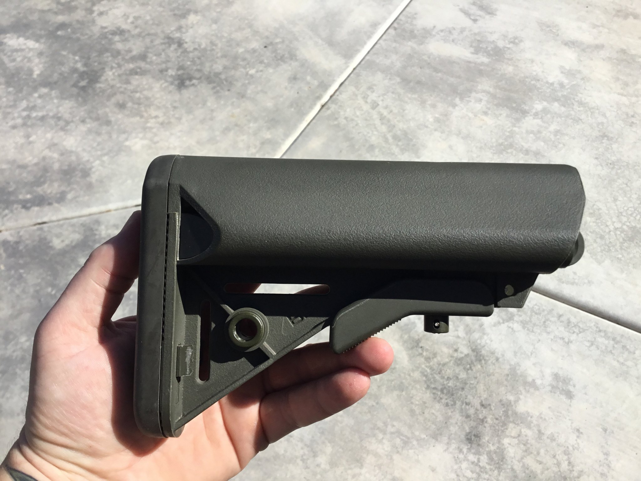 Took this off a rifle that I converted to rifle length stock. Is like new condition, OD green. Fits mil-spec carbine Buffer tubes. Buffer tube not included. $60 shipped conus