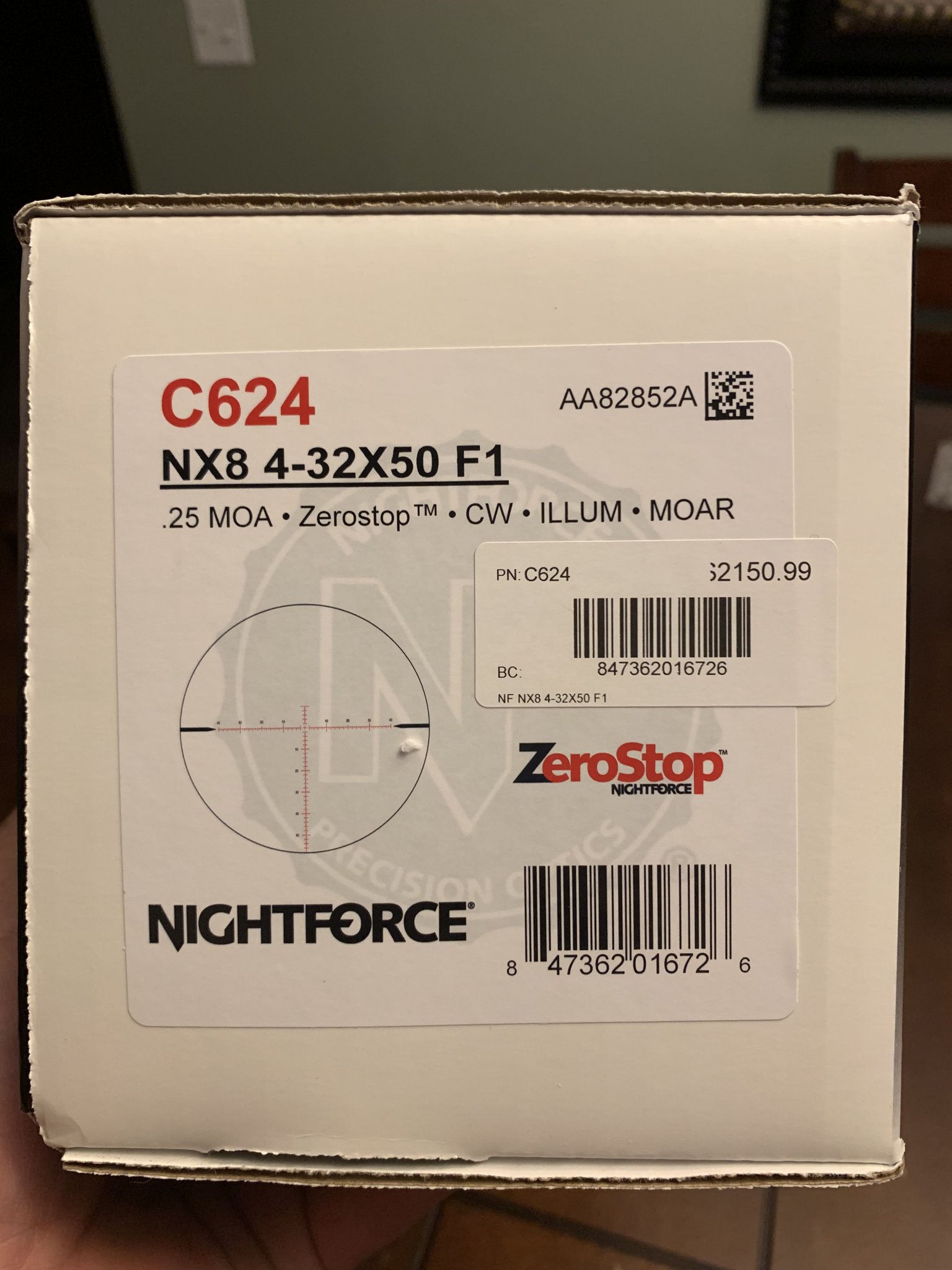 I have a brand new never mounted NX8 4-32x50 for sale or trade. Has the MOAR reticle. Have only took it out to look at it. No scratches or dings. BRAND NEW. Asking 2000 shipped and insured or maybe trade for desert tech barrels plus cash or a desert tech MDR black or fde.