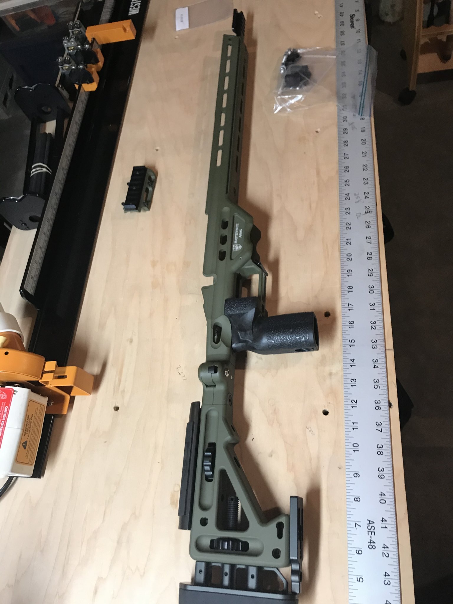 I’ve got an MPA ESR Folder with the ambi relief cuts. It’s for a Remington 700 Short Action. It’s been installed on a Remington 700 and lived in the safe for a while. Color is sniper green. Any questions just ask. $850 TYD