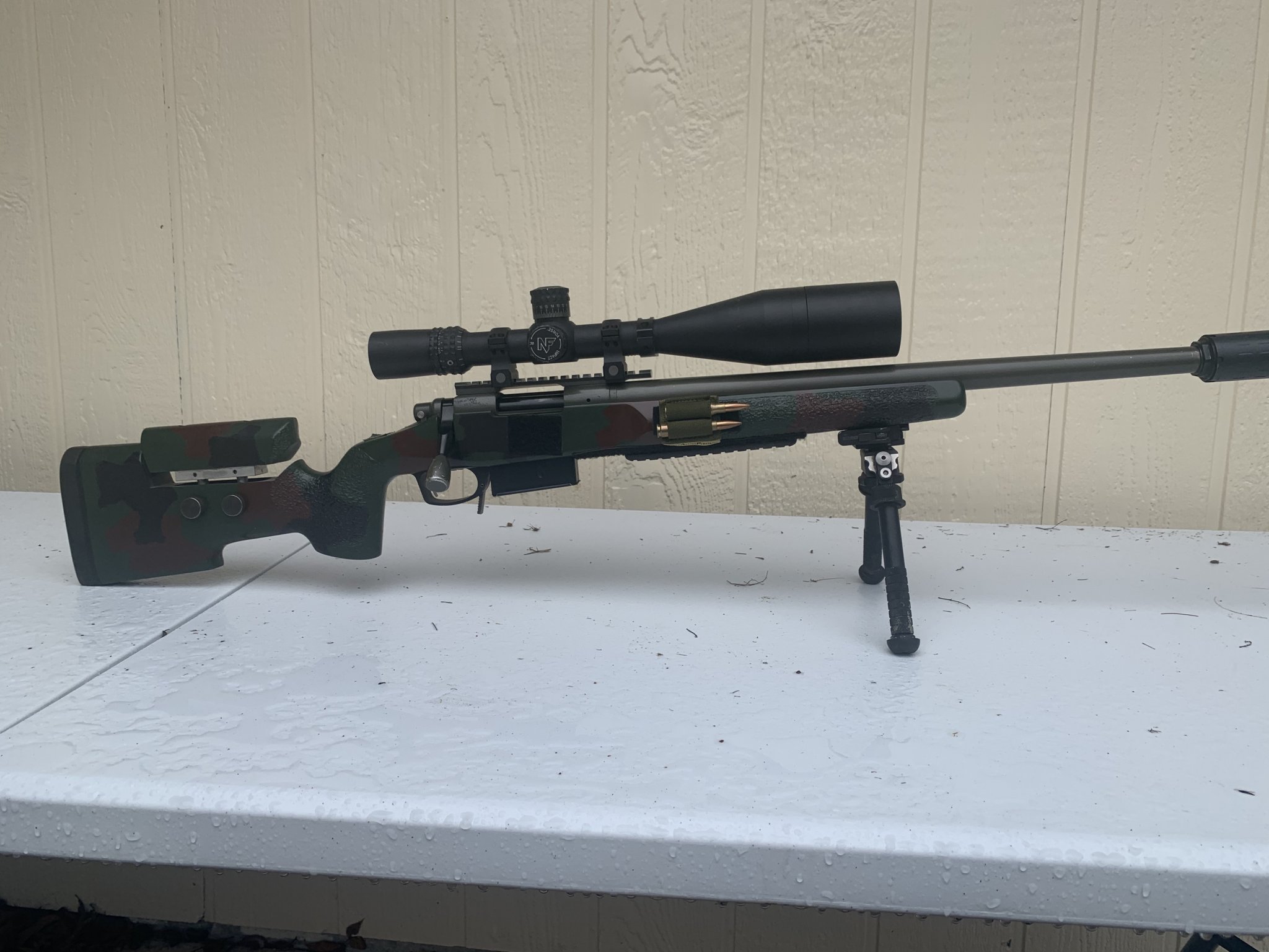 This gun was a passion project for me three years ago, however based on how much I shoot in PRS I literally have only gotten to shoot this once in the last 3 years. I pulled it out of the safe last week, took some factory ammo and shot the groups you see pictured here. These were literally the first 6 rounds through it in three years. Thing is a hammer and is the best looking rifle I own. A few scratches from having a safe way too full of guns, pictured here. However the bottom line is this thing is a hammer and it's WAY too nice to be sitting in my safe not getting shot. This sale is for the bare rile only (no scope/mag/bipod/supressor). This build cost me $4,100.