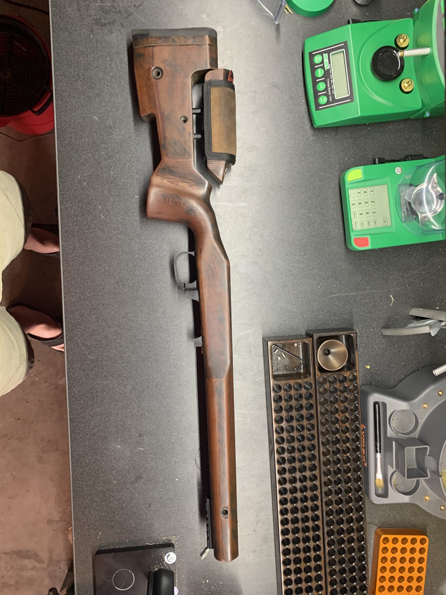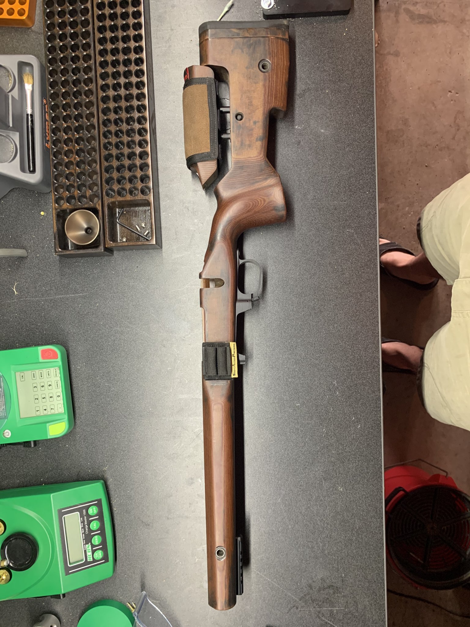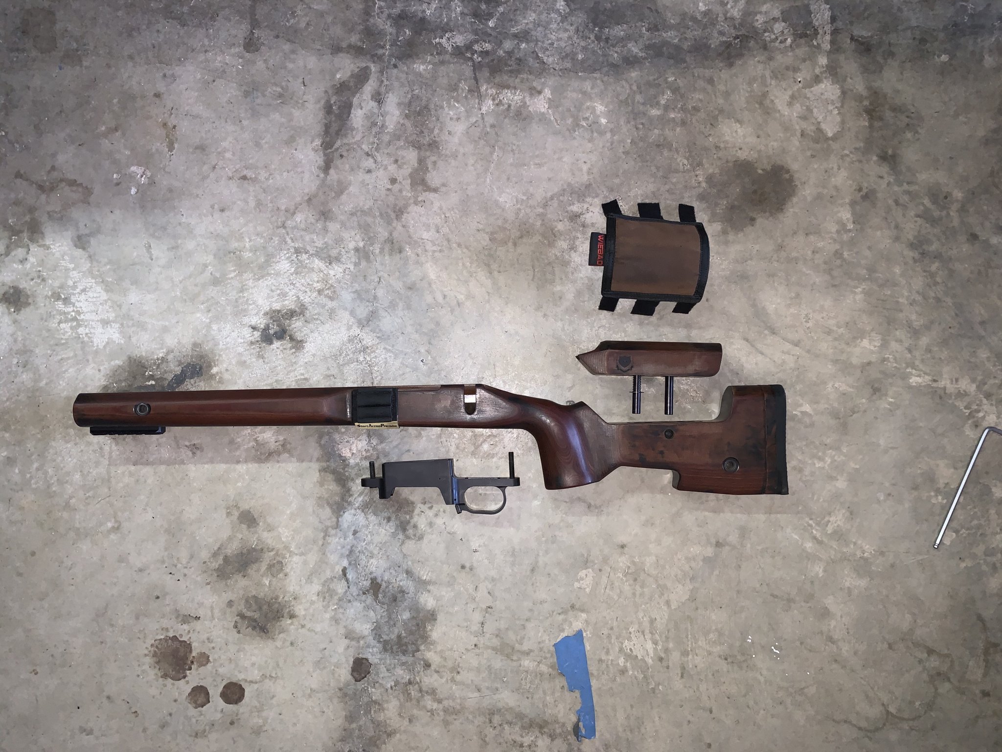 Foundation is inletted for a LH TL3 but will also fit other 700 footprint actions. It has the army engineer regimental crest engraved on it, if that doesn’t tickle your fancy, I am including the cheek pad that will cover it.