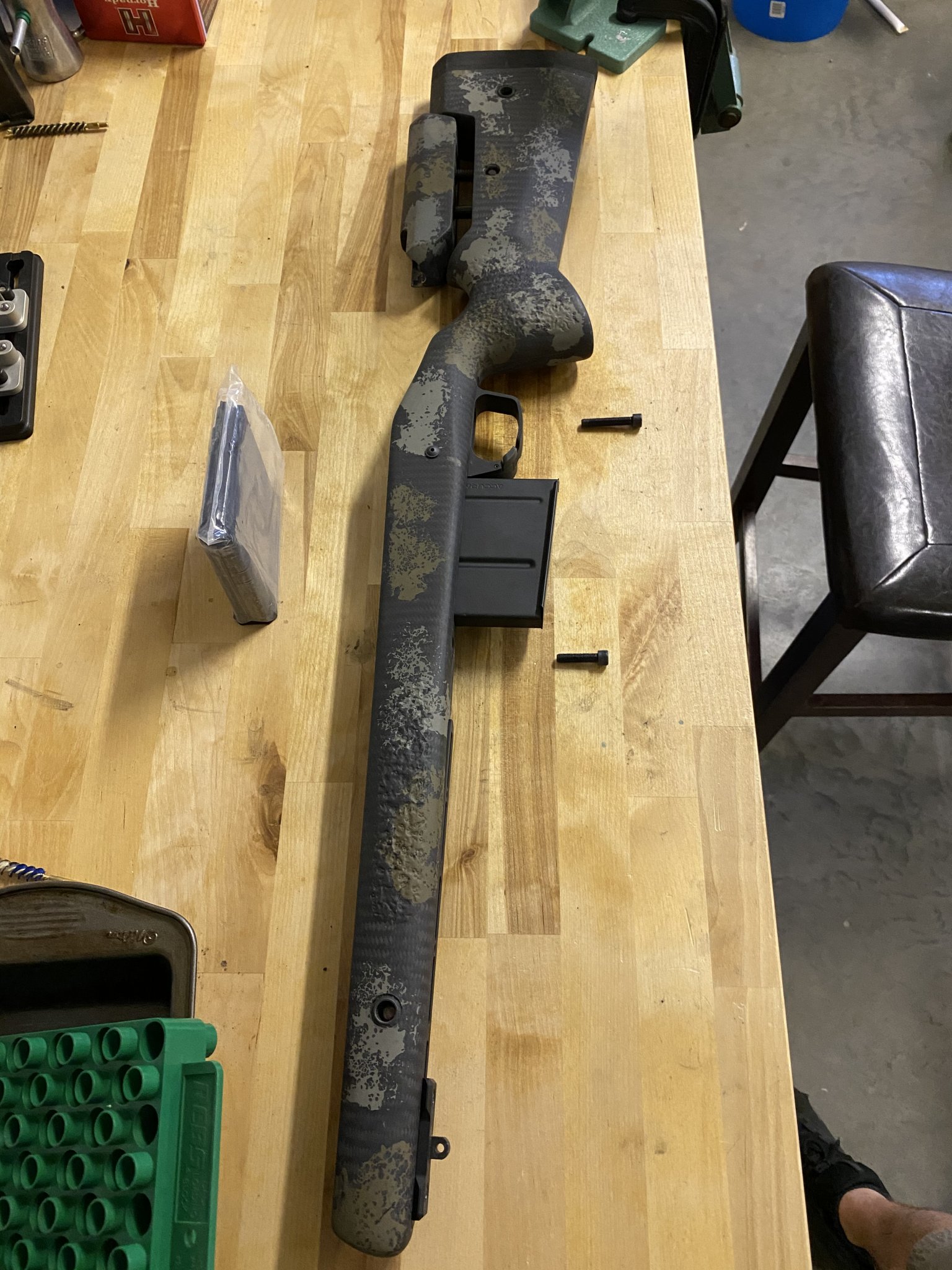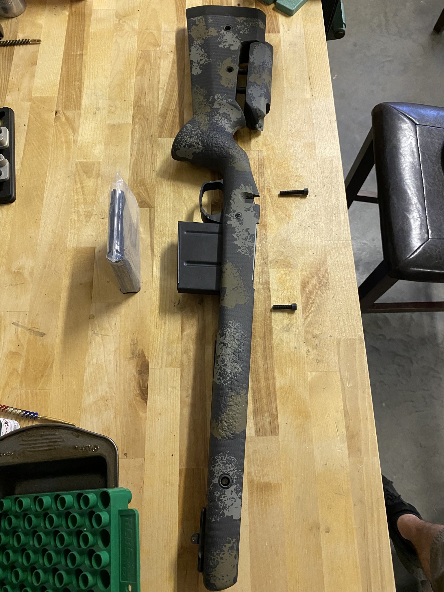For sale Manners EH1-A, Elite Tac Swamp Camo, Long Action, Right Hand, ejection port and bolt cut for Bighorn Origin action, CIP length DBM chassis, 2x 300 WM 5rnd mags- one is unopened, Proof Sendero barrel channel, 2 flush cups left side and 2 right side, Sling stud rear bottom, Henderson precision RSR (rapid situational rail), and Magpul M-Lok Bipod Mount.