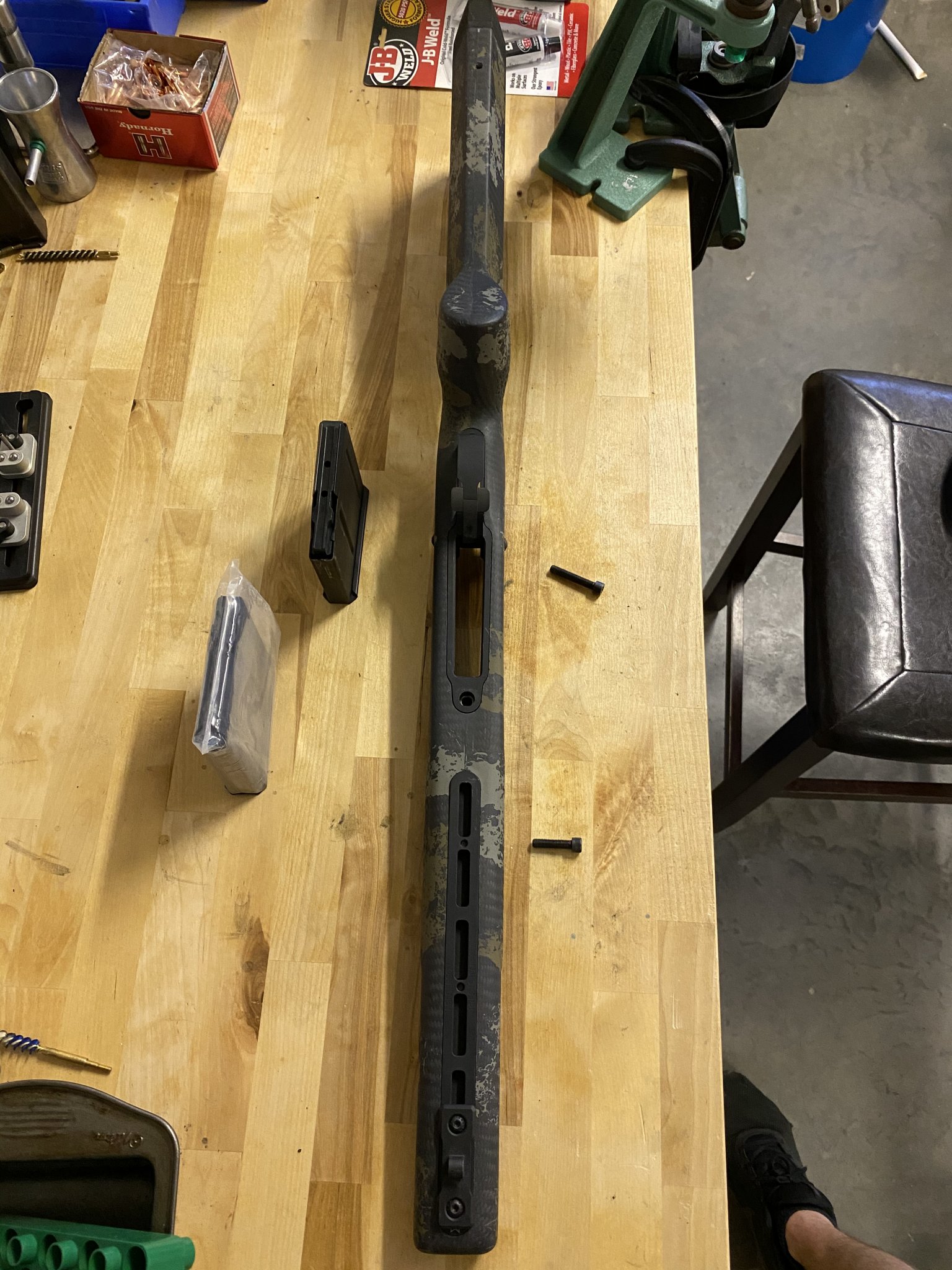 Barrel channel is carbon fiber lined for reinforcement. And just FYI, the Henderson Precision rail sticks out slightly under the fore grip because the bottom of the EH1 is not perfectly flat. Still works great but see pics below. Will come with action screws as well.