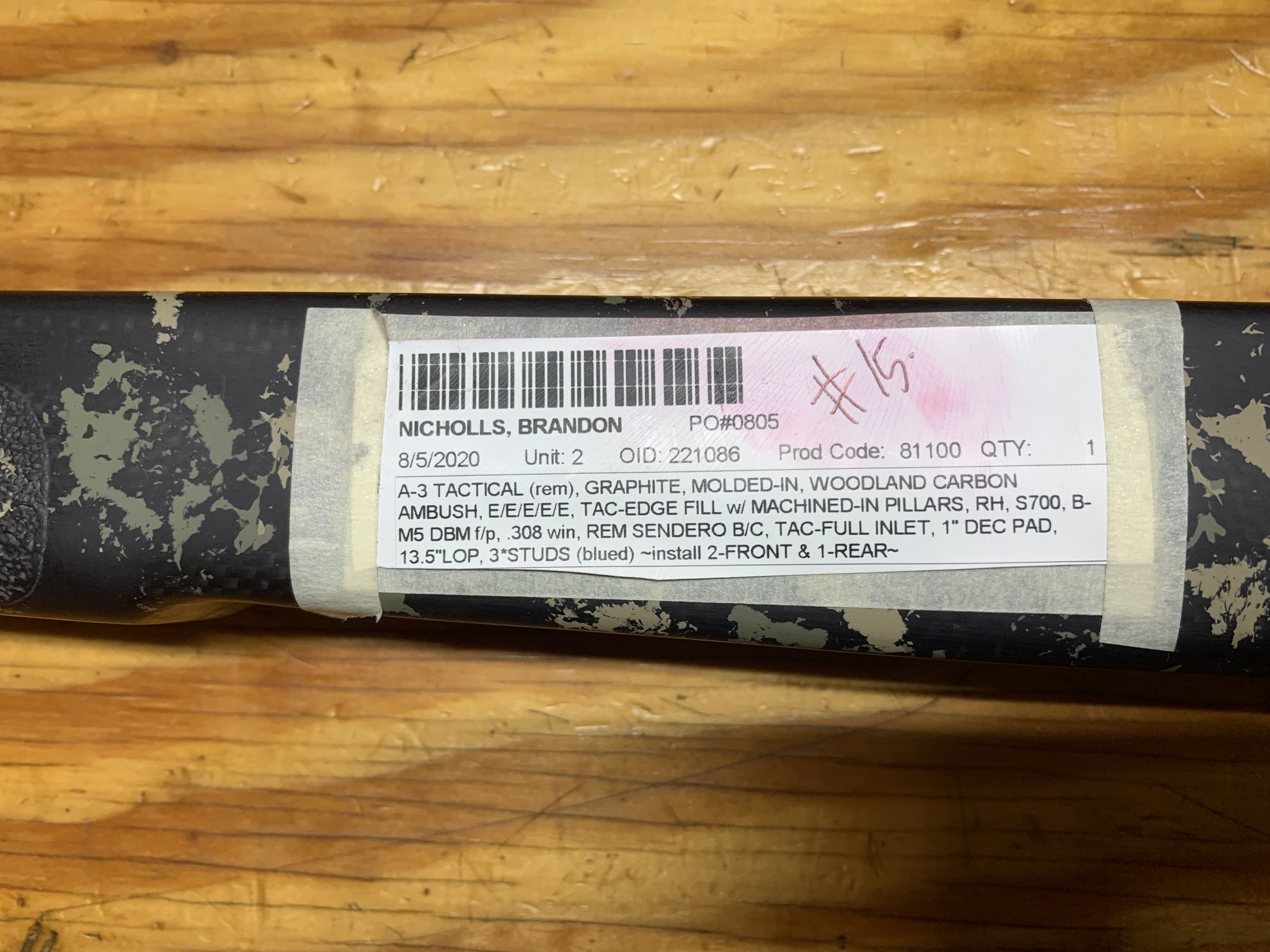 I have a brand new McMillan A3 Carbon fiber graphite stock for a right hand Remington 700 SA or clones. Planned on building a lightweight hunting rifle and it never materialized. All specs are listed in the 1st pic.