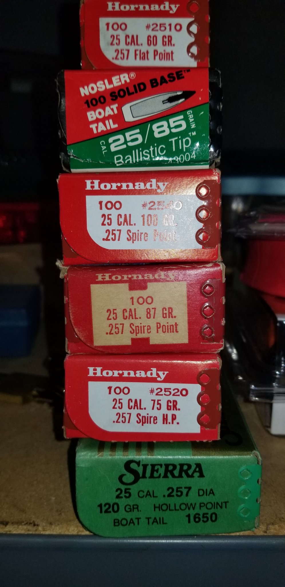 .257 bullets a few brands and different grains.