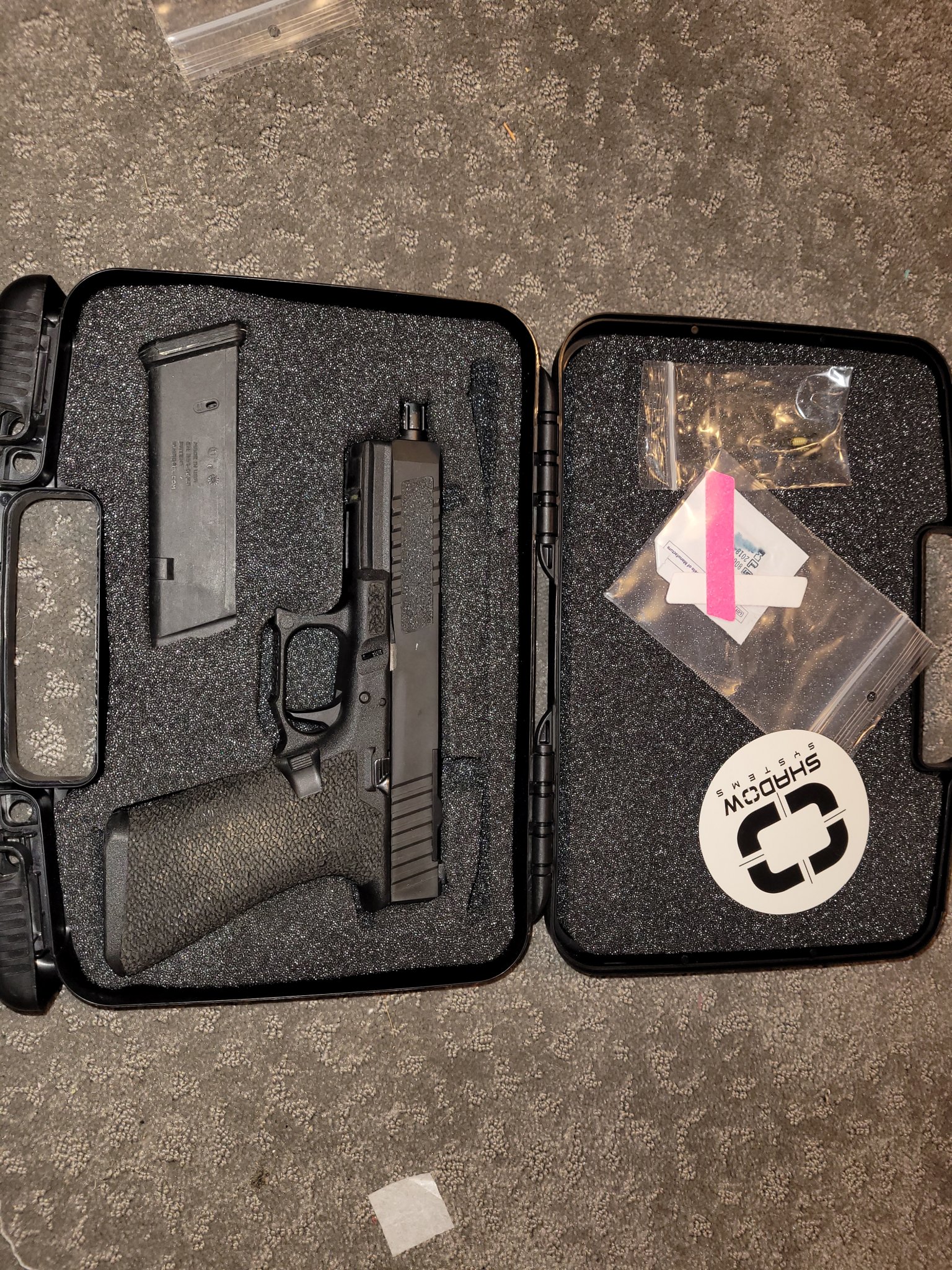 1x ss9f , threaded fluted barrel. Used approx 2k rounds. with RMR cut and cover, threaded barrel, night sights, full SS build .Comes with case, pistol and magazine, and the extras like grip tapes etc. 700.00 ( grip is dirty and will be cleaned . sorry)