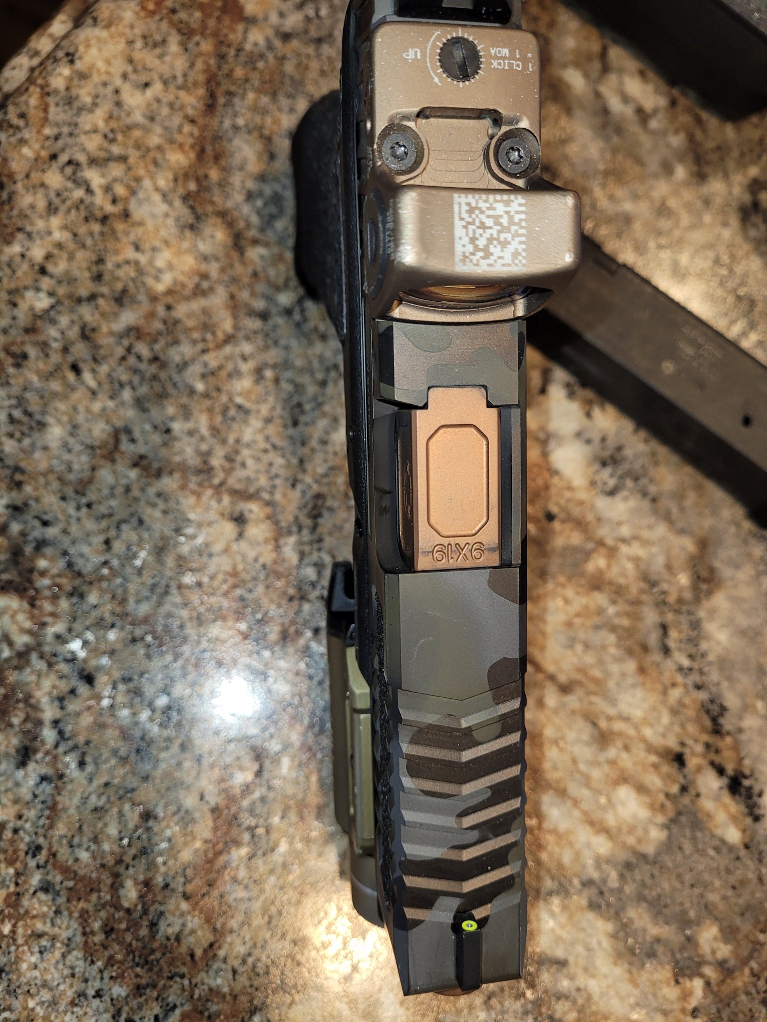 1x SS9f, Copper bbl, RMR cut, under 1k rounds, mag well, rmr cut and cover, night sights, trijicon type 2 HRS, case and paperwork, and magazine. Slide is cerakoted in a midnight multicam. 750.00 pistol , 1100 with RMR and box/paperwork. ( rmr alone 450.00)