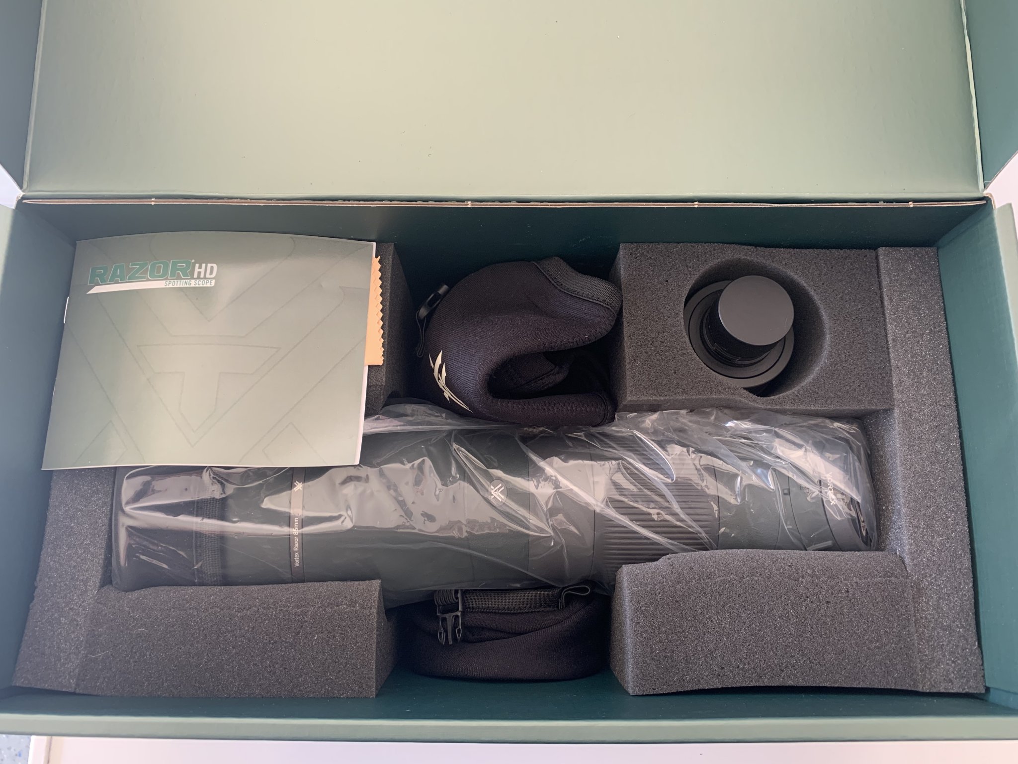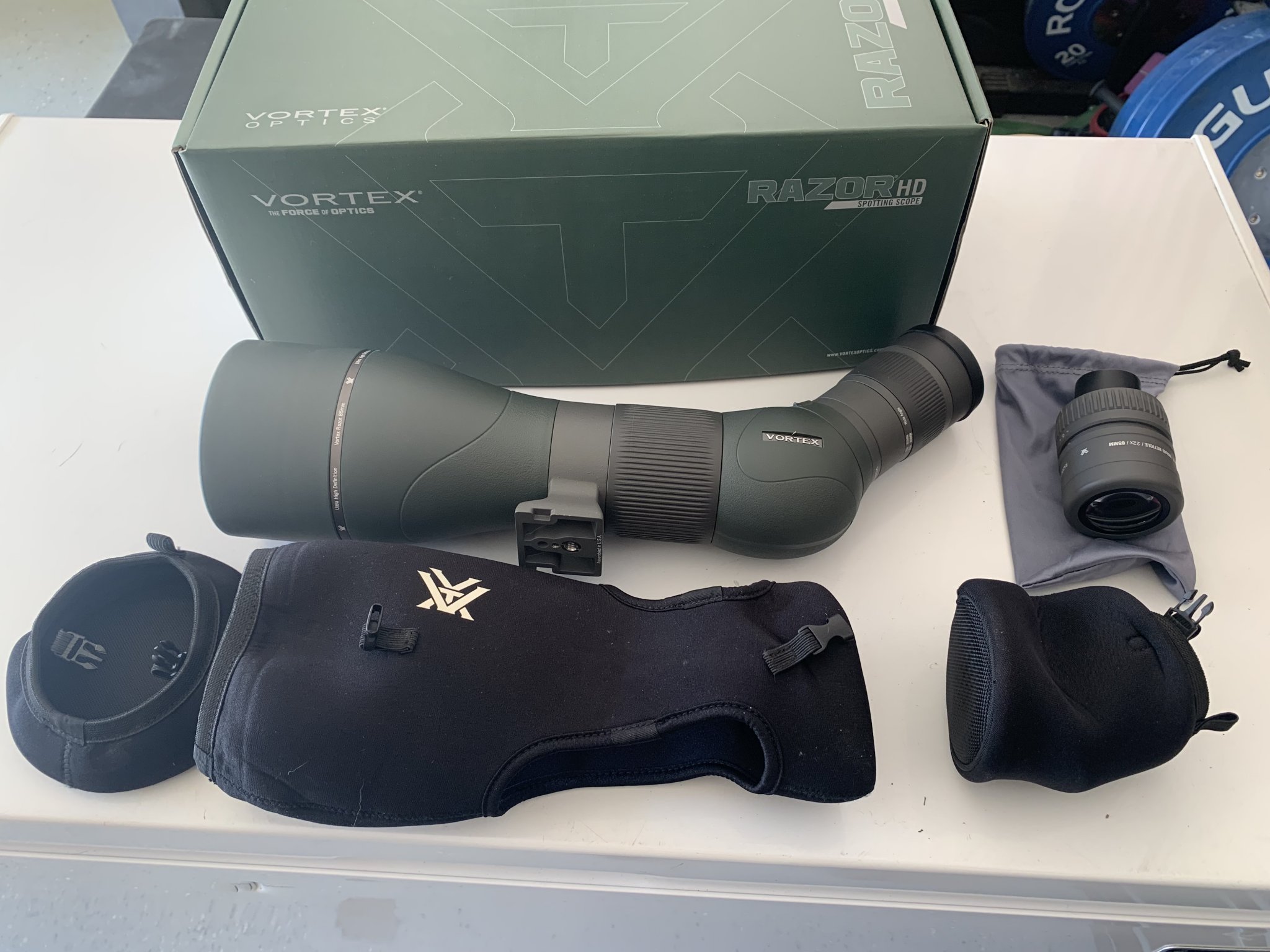 I have a like new condition Vortex Razor 27-60x85mm spotter for sale. I’ve gotten way too busy lately and am slowly letting go of things. I’m asking $1,100 and it will come with the original box, paperwork and even plastic wrap.
