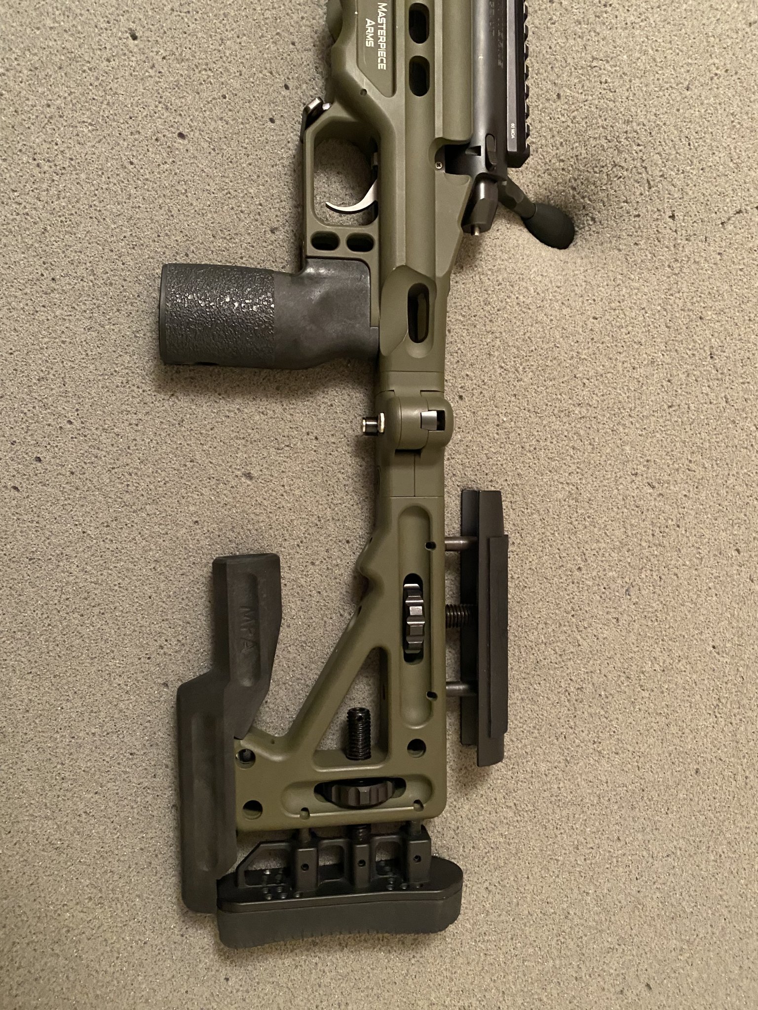 Vudoo v22 gen 2, jewell HVR trigger, MPA BA chassis. MPA has the ultra bag rider on it and is folding. Excellent set up, couldn’t ask for a better shooting .22. Has 650 rounds down the pipe. The smaller group in the pics was at 50 yard, the slightly larger one was 100, both 10 shots. Not looking to split up, need the funds for some unforeseen bird dog expenses.. ***SOLD*** shipped I can send more pics if needed.