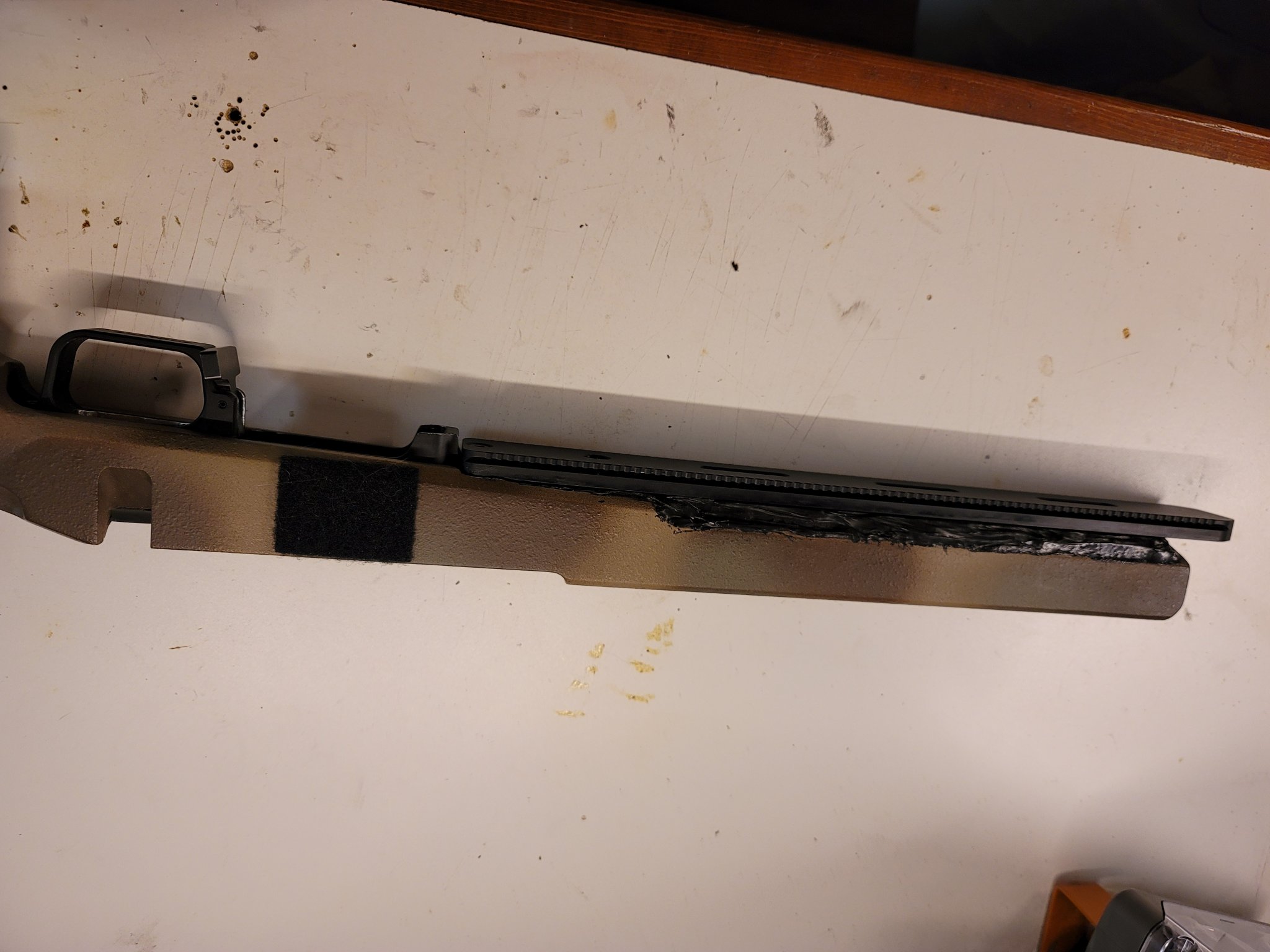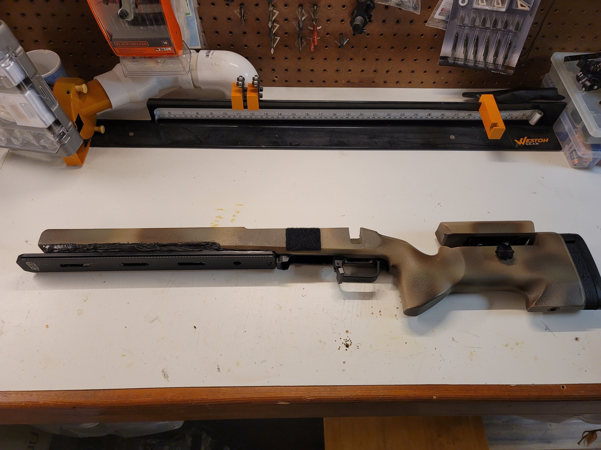 Changed to a chassis, so this one could use a new home. McMillan Z10 (I think they changed the name to U10 now) inletted for lefty R700 SA. Has standard fill and 12.5" LOP. Bedded for Impact action, but recoil lug area is relieved for a RimX too. I milled the bottom of the forend slightly to accept the Area 419 weighted arca rail. Rail is bedded to the forend and has all weights installed. Also comes with plastic and brass LOP spacers. Not the prom queen by aby stretch, but works just fine.