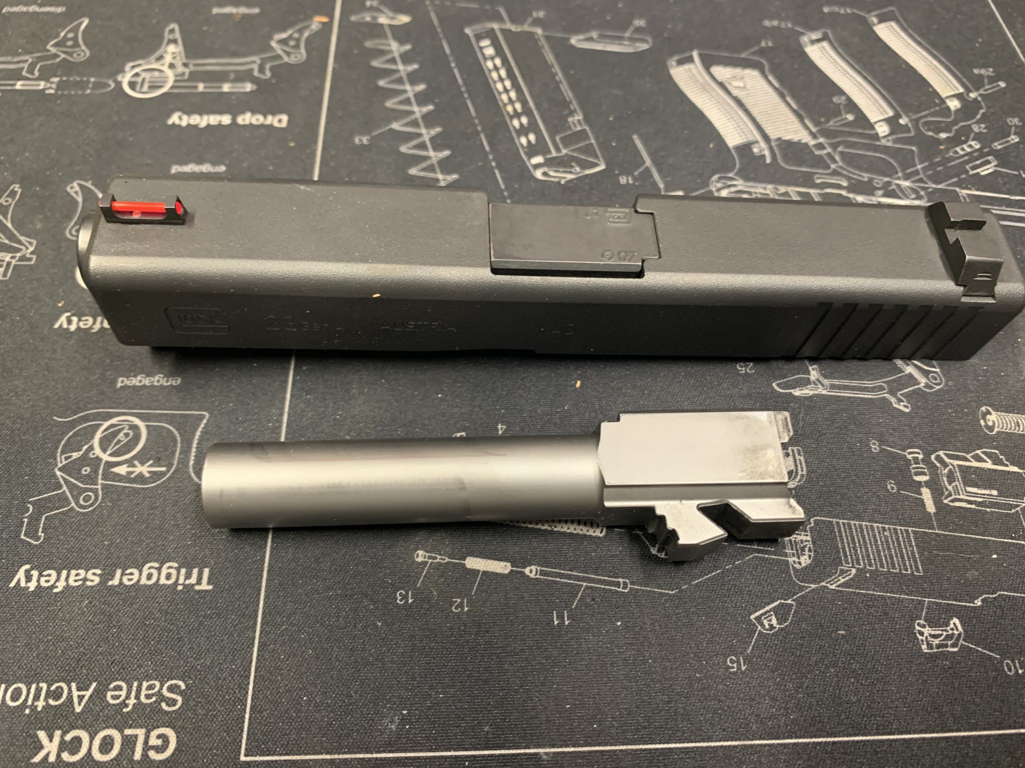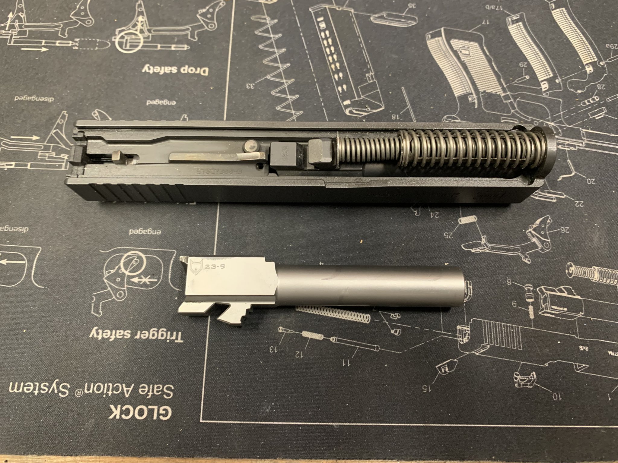 Selling a Glock 23 slide, with .40 barrel and 9mm Lone Wolf stainless barrel. Has Ameriglo sights installed. Has ~500 rounds through it. Not a mark on it, as new. Just went aftermarket, so selling. Asking 350, shipped.