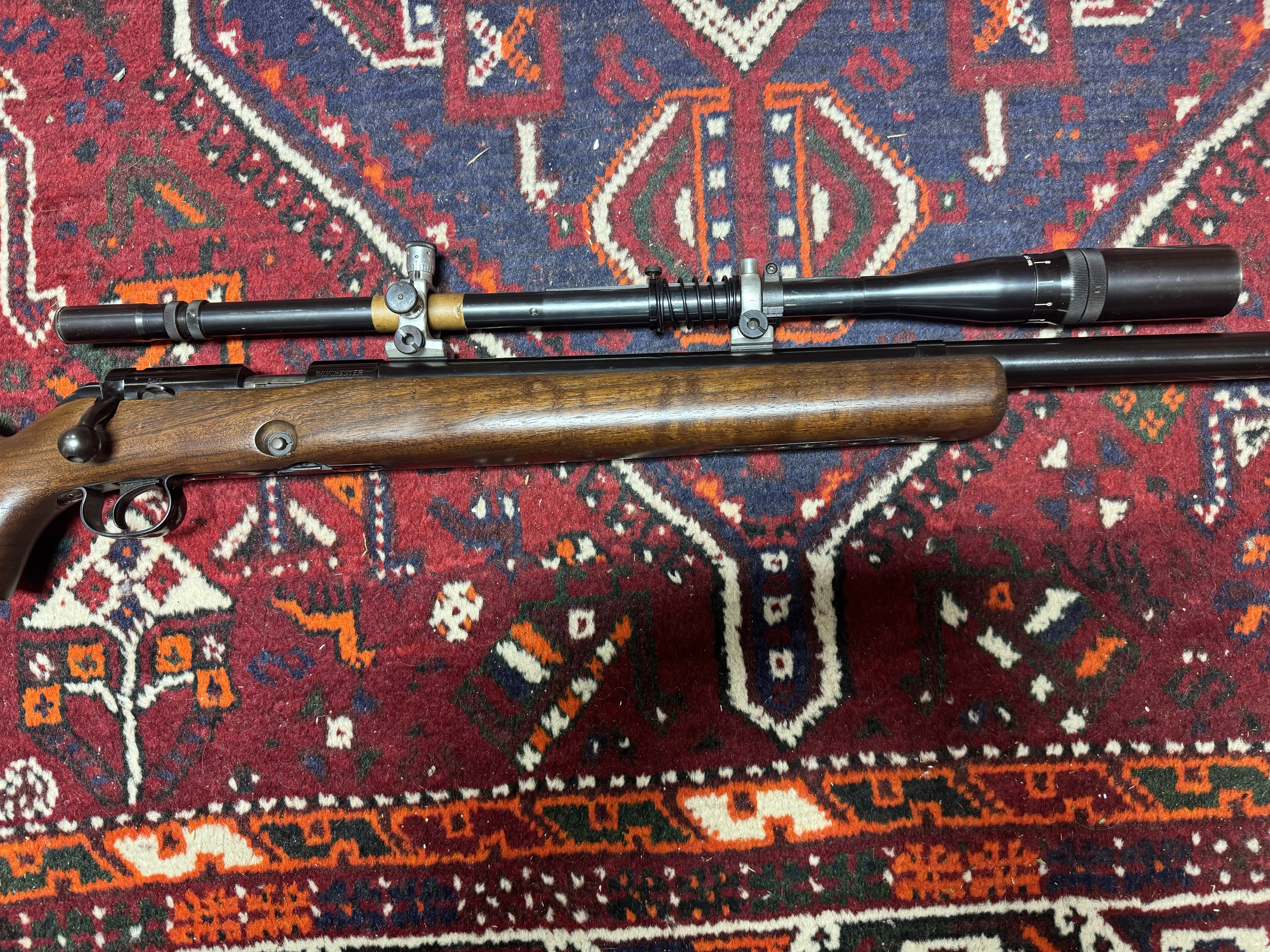 I am listing up a Winchester Model 52 C repeater Bull Gun. It is a true bull gun not a heavy target that often gets called a bull gun. Barrel is 28" 1.125 at breach and 7/8" at muzzle. This is the rarest of the cataloged Winchester 52's. I have only seen two in 40 years. Fewer were produced than the 52C Sporting rifles. Has scope blocks for Unertl type scope. Several scopes available if wanted. It is original in every way and great condition. Very accurate. 1950.00.