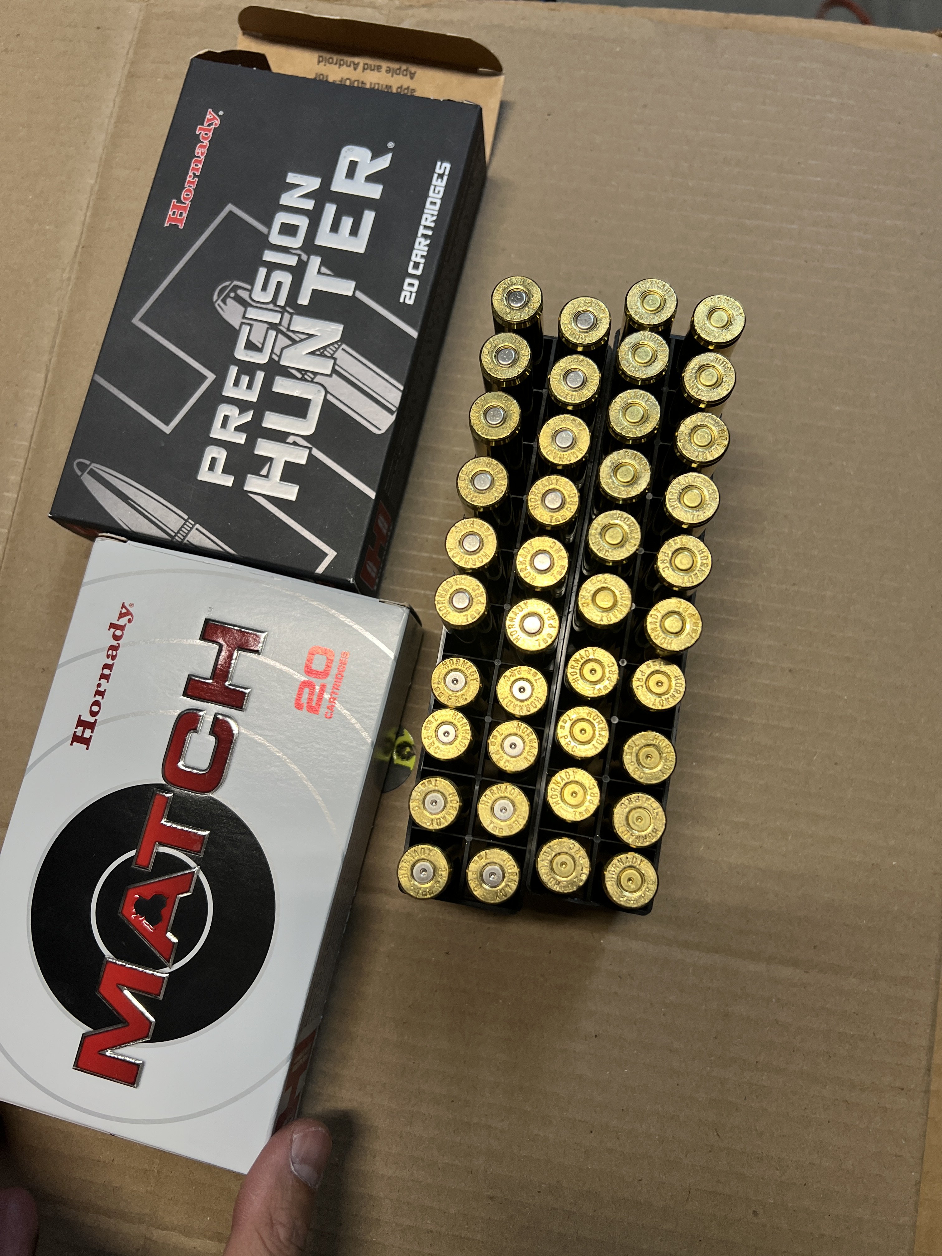 -Hornady 180eld M: 1 box full and 1box-12 rounds left. And shot brass. All for $72
