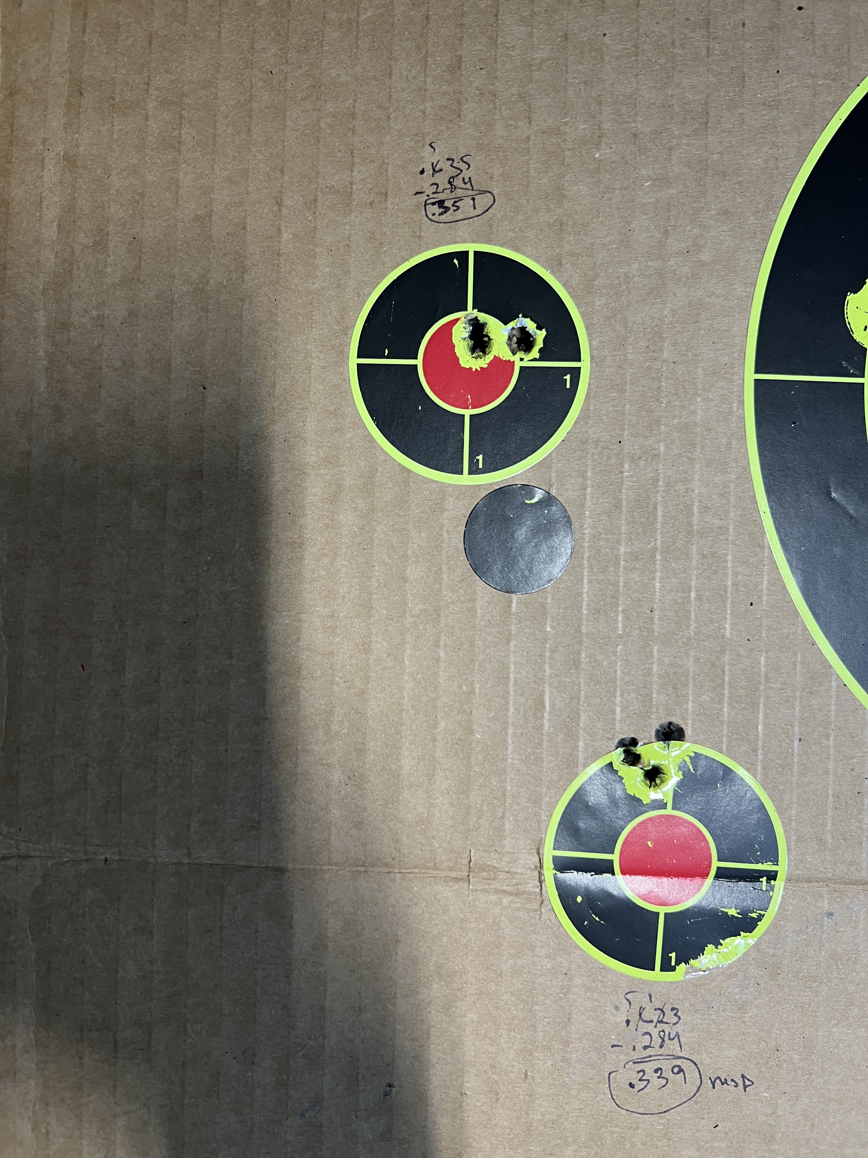 -then a load development 3 shots x 5 different powder charges. Best group .4moa not including the ladder group above which is crazy it was .212 MOA