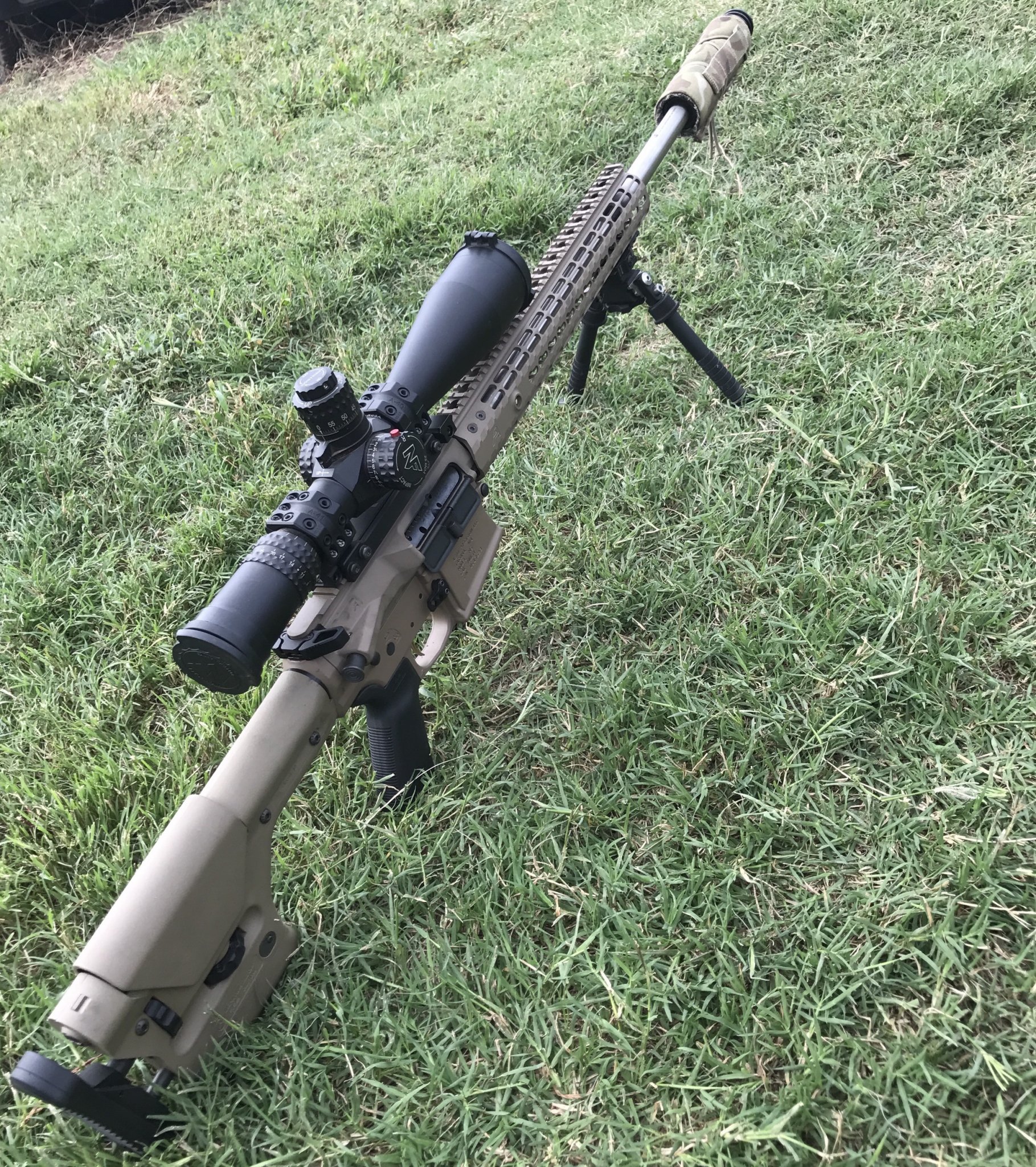 This project will be a 6mm Creedmoor. Using Aero M5 receivers, Wilson Combat 22" match barrel, Wilson Combat Q-Comp, SLR 16" Solo handgaurd and Wilson/SLR Sentry 8 adjustable gas block, Toolcraft nickel boron bolt carrier group, JP Silent Capture Spring (configured to H buffer weight and with heavy spring) and XLR stock. For right now an MBT trigger will go in it, but soon be replaced with a Triggertech trigger.
