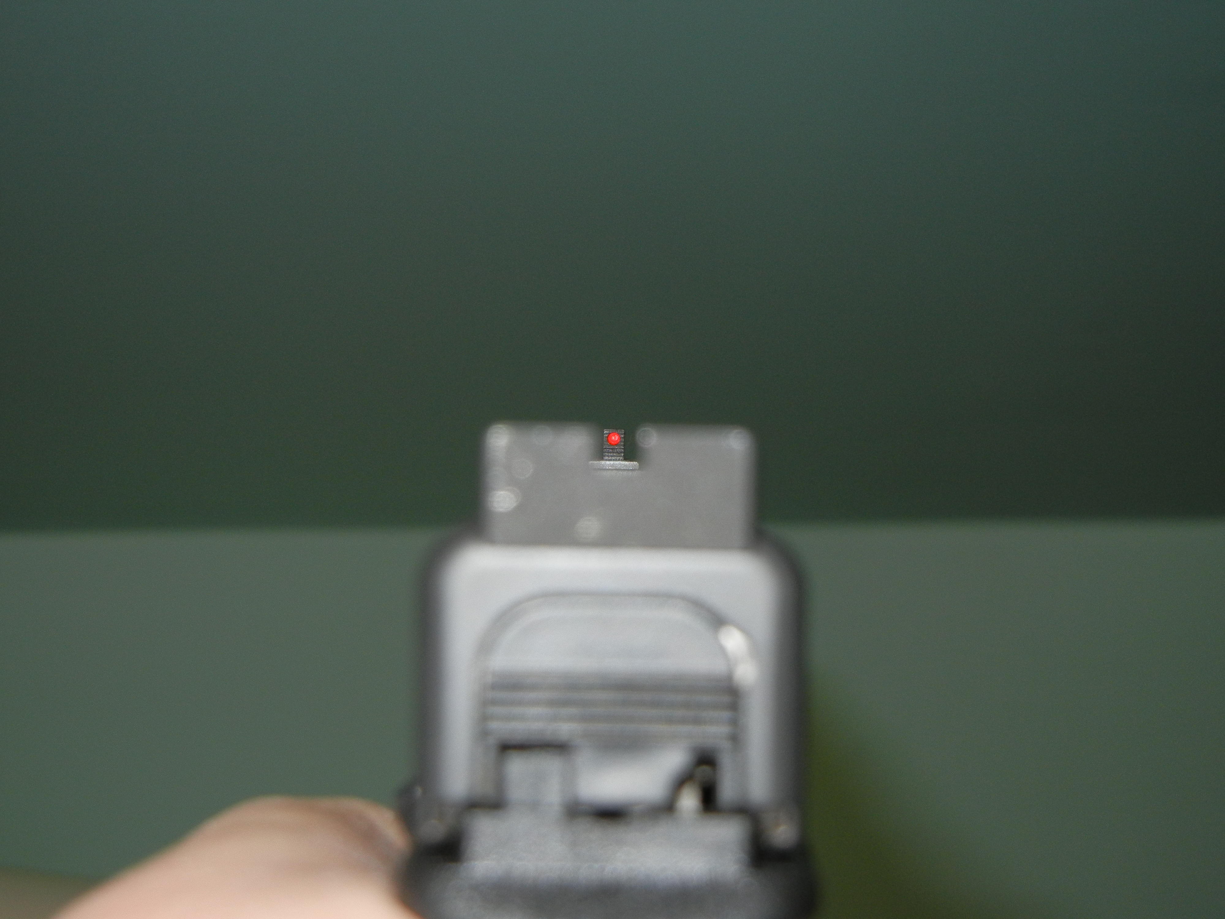 the sights SUCK ASS!!! i had a hard time getting a good, consistent sight picture. at 7 yards (i didn't want to extend out too much for my first time out), i would have a 5 shot 1" group, then on my next mag, i would have a 5 shot 1" group 3" to the right and 2" up. WTF? at least when i had a sight picture for that particular 5 round mag, i was consistent, but when it was time for the next mag, i was way off.