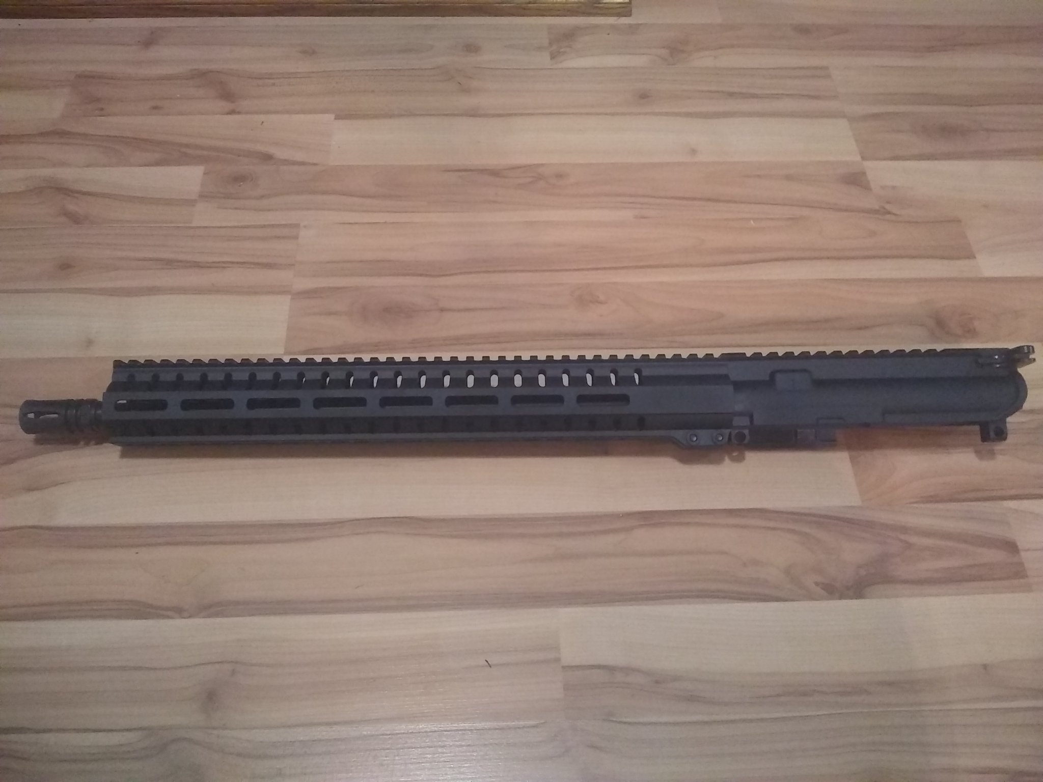 Almost new, roughly 100 rounds fired through it. A few minor marks due to mounting a scope on it. $530 for upper only.