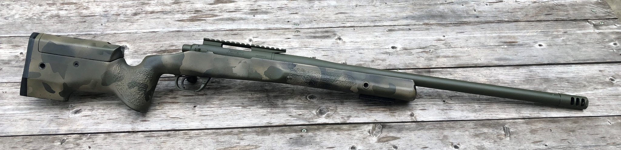 Barrel: 24" Bartlein Rem Varmint 1:8 5/8x24 with a brake (I haven't tried to remove it)