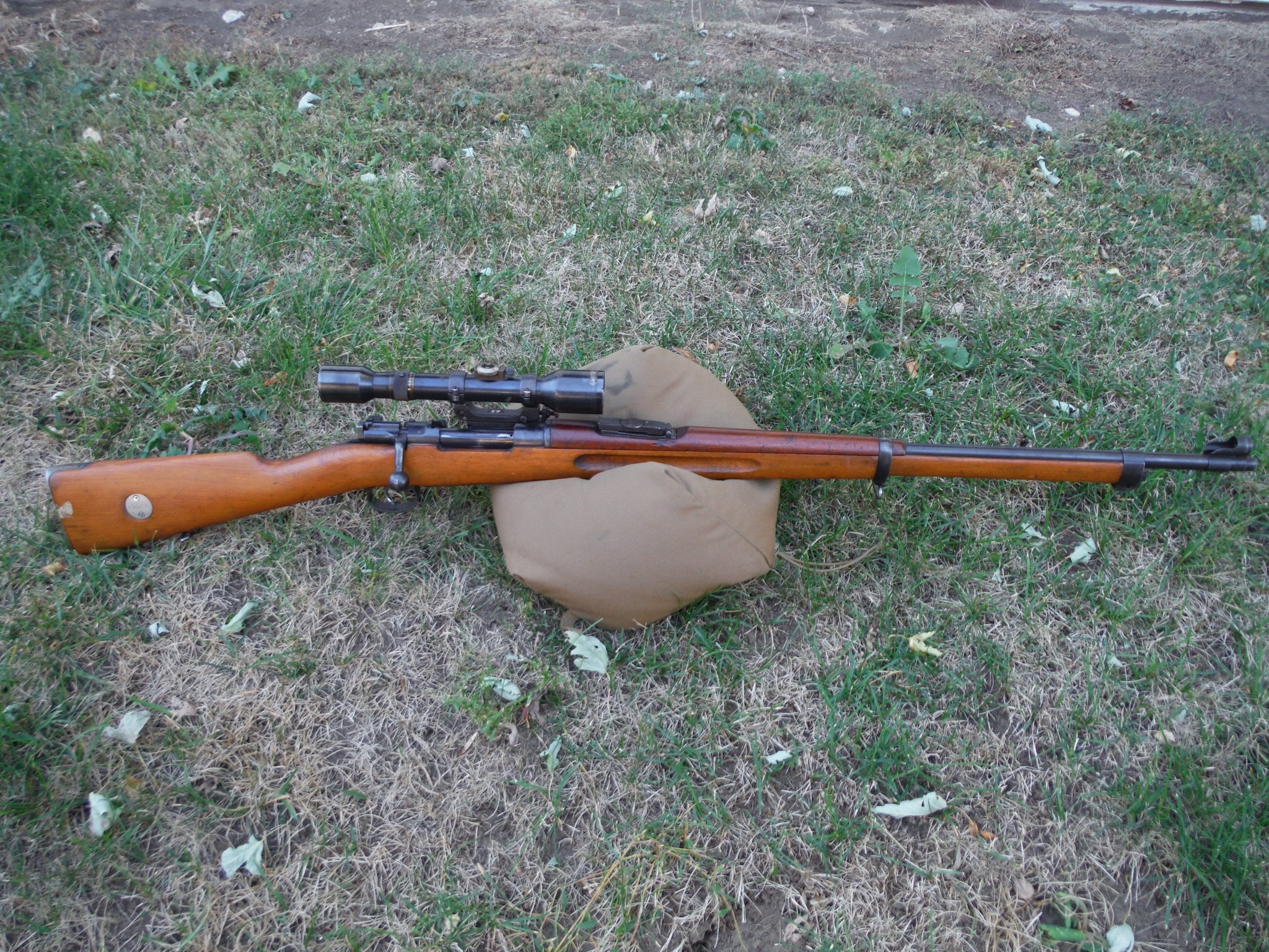 Just got this guy in the shop. This is a early converted Swedish Mauser M41-b sniper rifle, german made in the Oberndorf factory in 1900. Bore is very bright and shinny. Bolt matches the receiver. 1941 marked German AJACK 4×90 scope. Scope is as clear as a 80 year old scope can be, the elevation knob and rear focus appear to work as they should. Has correct M/55 marked rear sight. These rifle just keep going up in price guys/gals. What you see is what you get (minus tac pillow).
