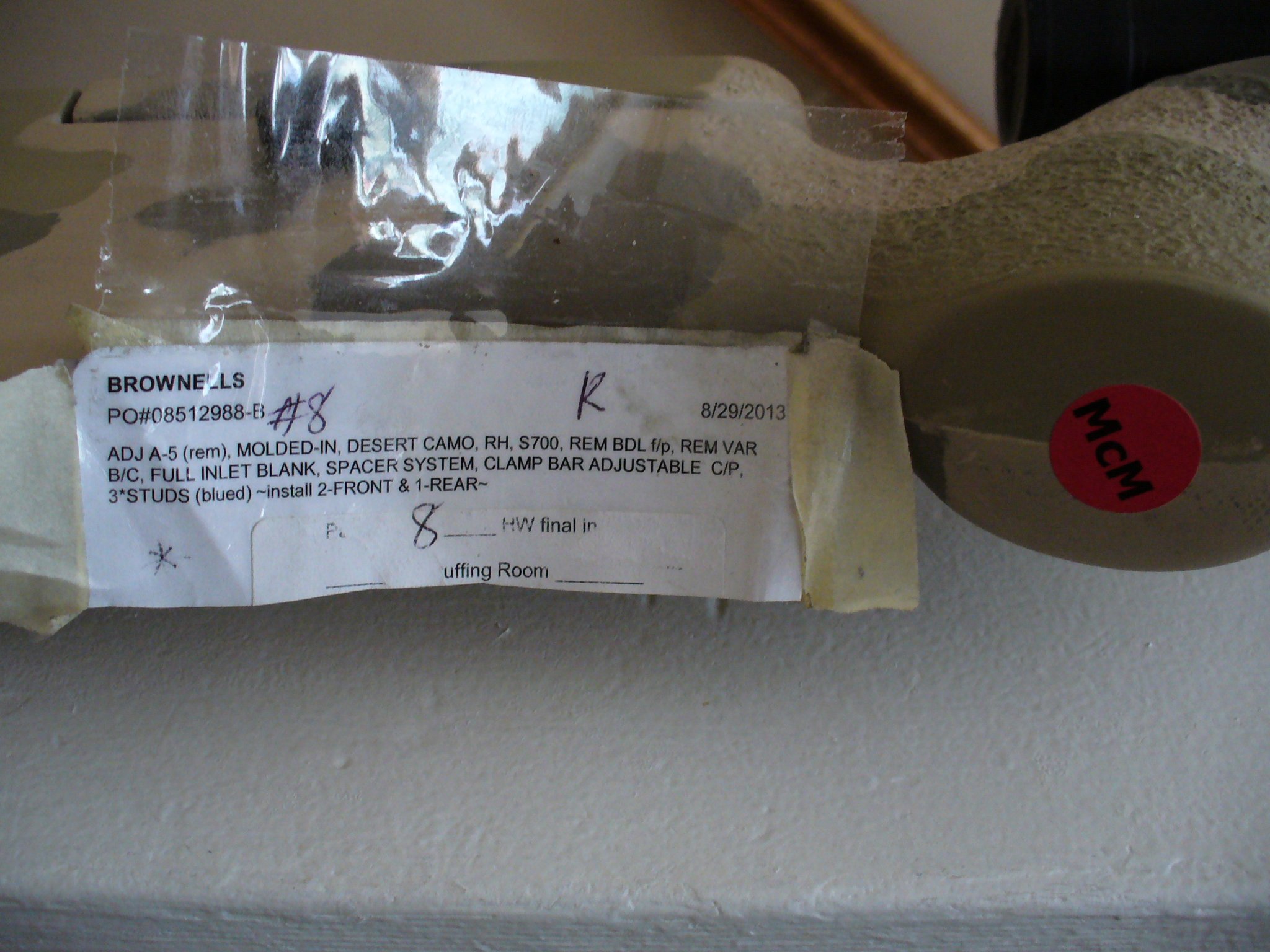 I have for sale one brand new McMillan A5 Adjustable stock in the factory molded-in Desert Camo pattern. This stock will fit the Remington 700 BDL short action rifles with the Rem. Varmint/Sendero barrel contour and hinged floor plate. $685.00 shipped. Payment by Paypal Friends & Family (no mention of gun parts) or USPS M.O. only. First "I'll take it" followed by an IM gets it.