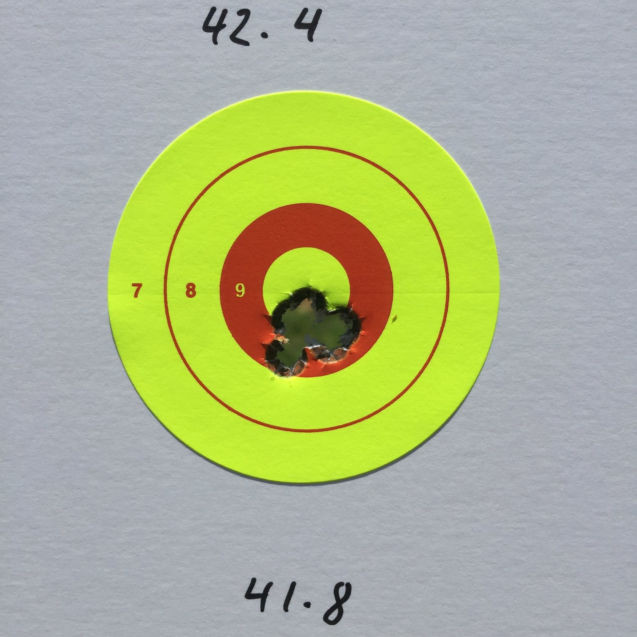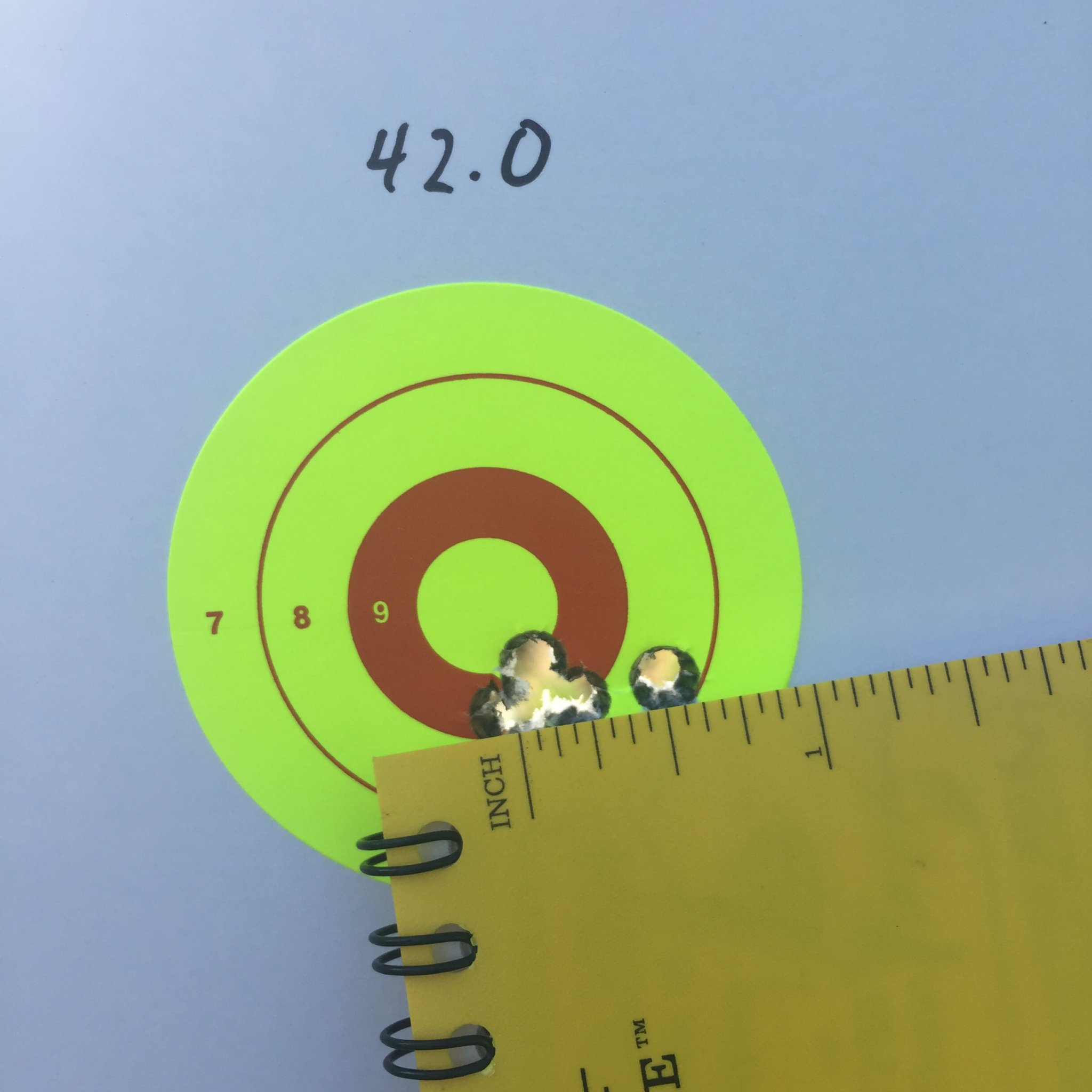 Pics. Wish I hadn’t pulled the 5th shot on 42.0 grain group.