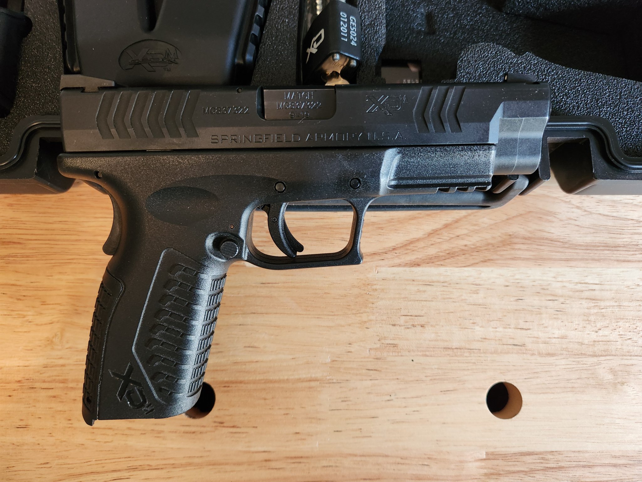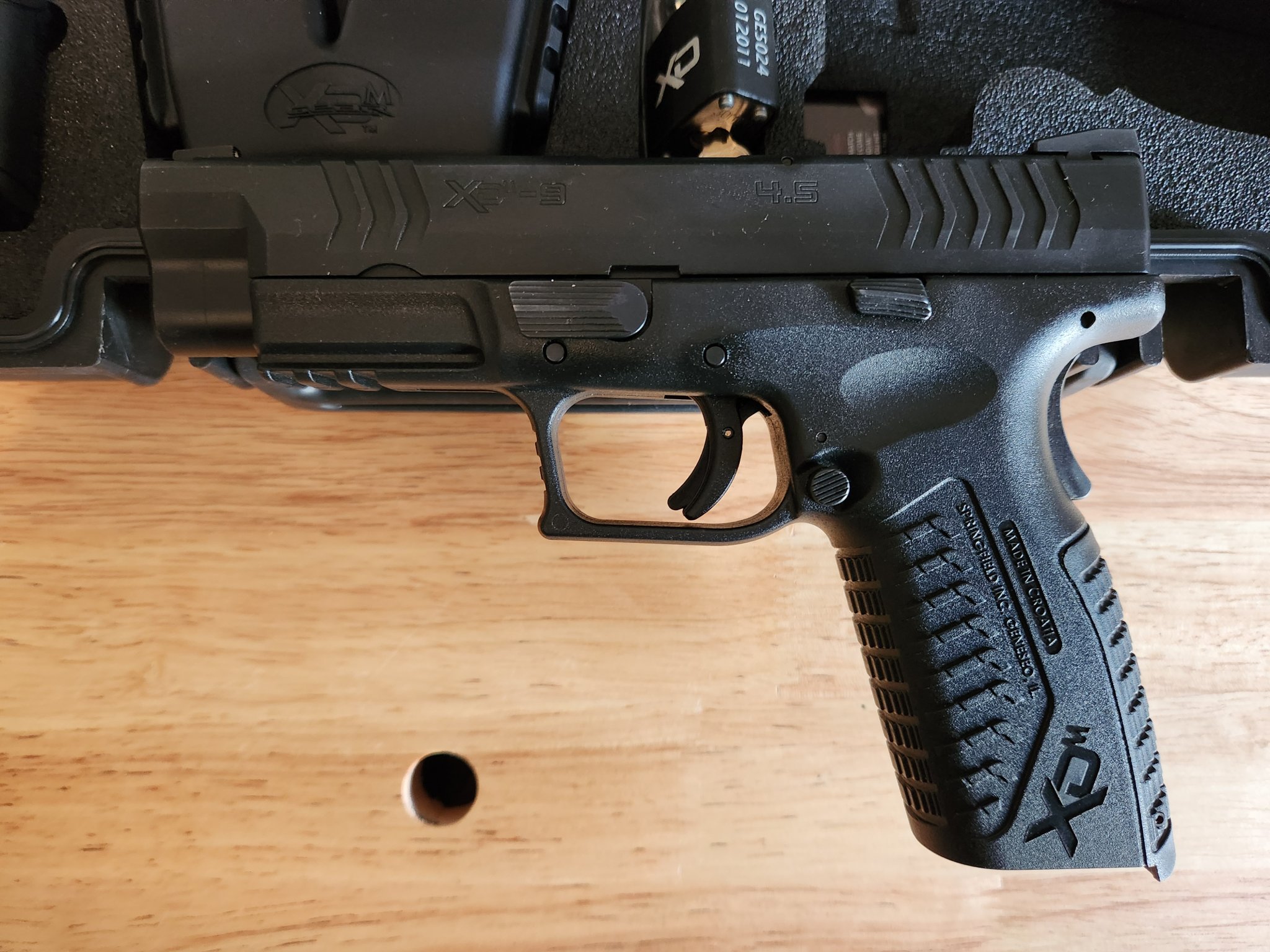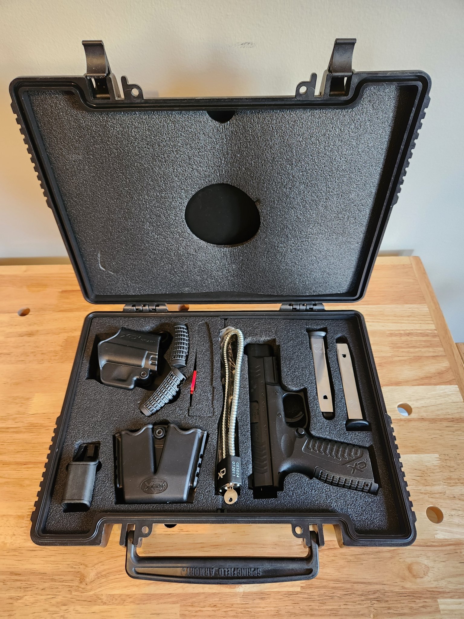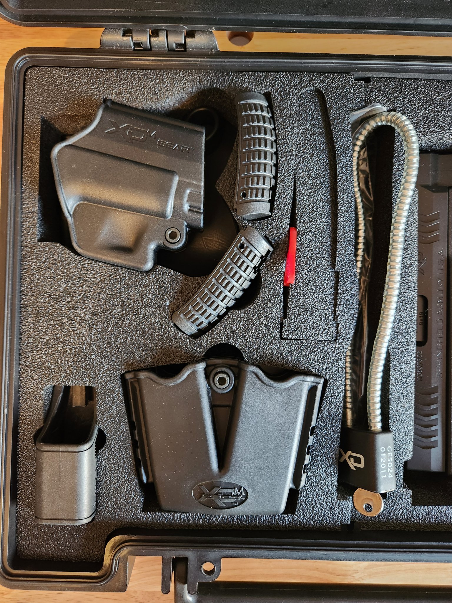 Almost new XDm with all the factory goodies. 4.5" match grade barrel, paddle holster, two mags, mag holster, extra grips.
