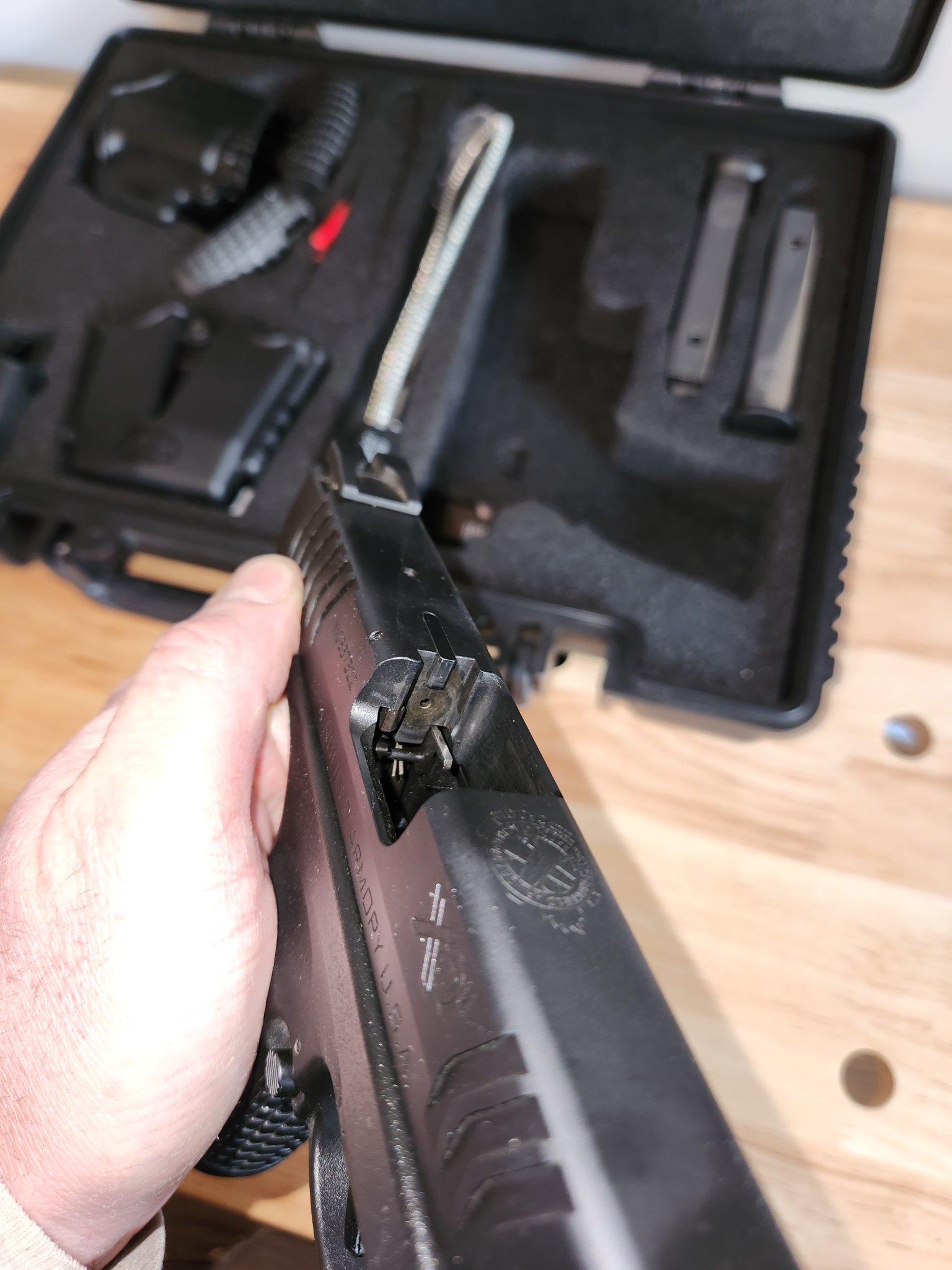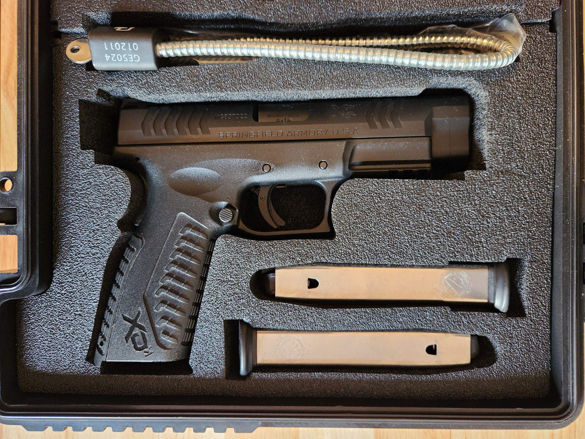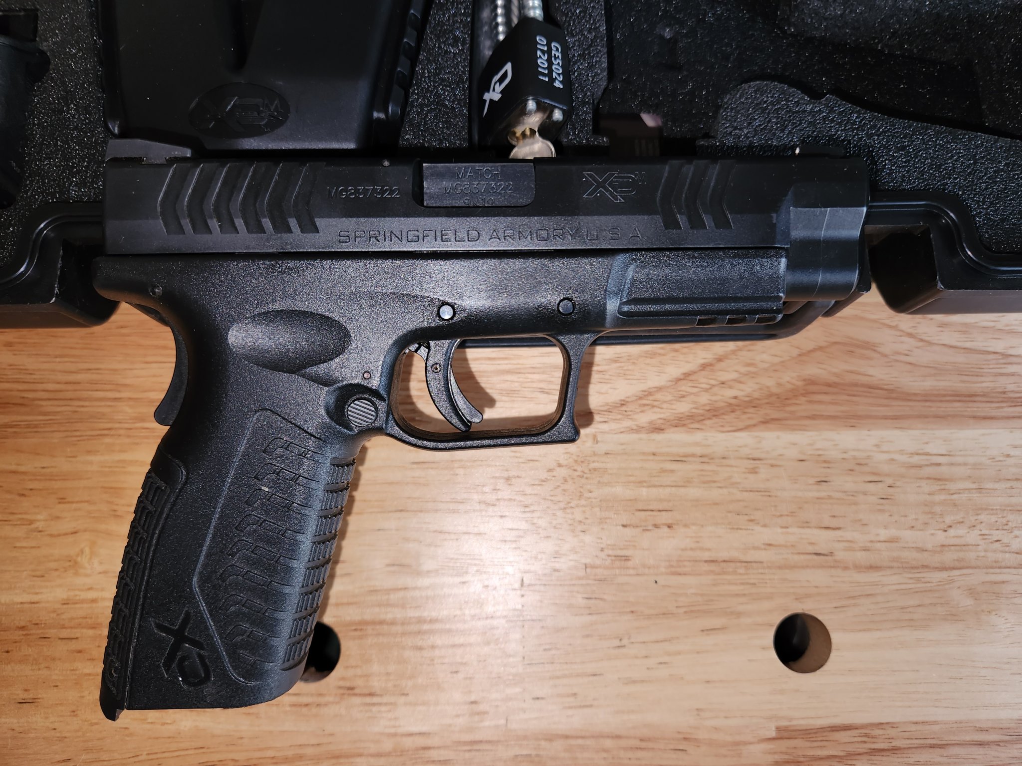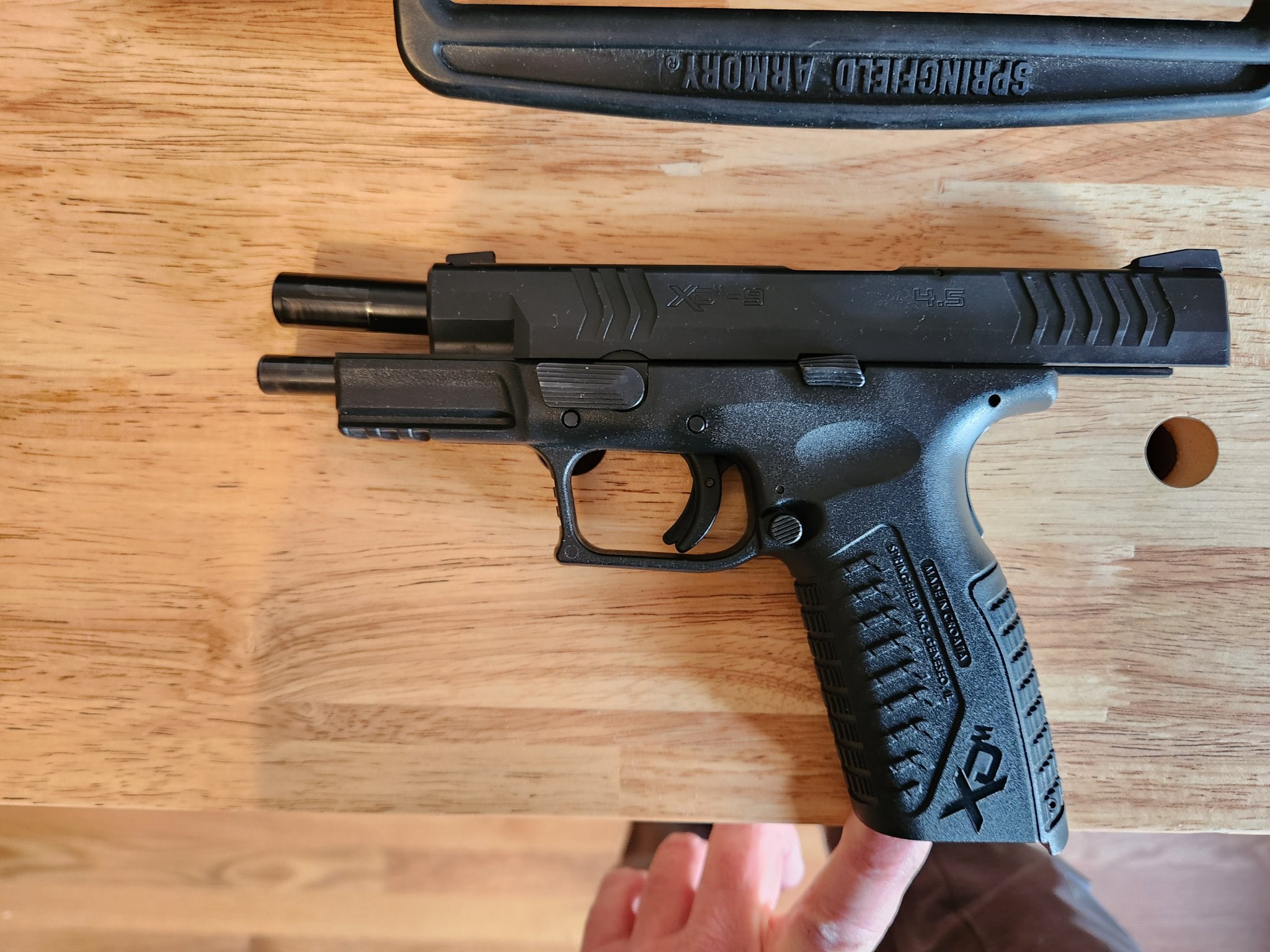 Almost new XDm with all the factory goodies. 4.5" match grade barrel, paddle holster, two mags, mag holster, extra grips.