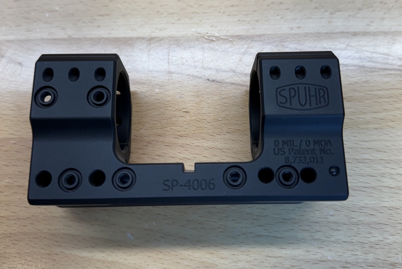 Excellent condition Spuhr SP-4006. 34mm, 0 moa, 1.35" height. No box or wedge, but all hardware is mint and I pack my stuff well and ship quickly.
