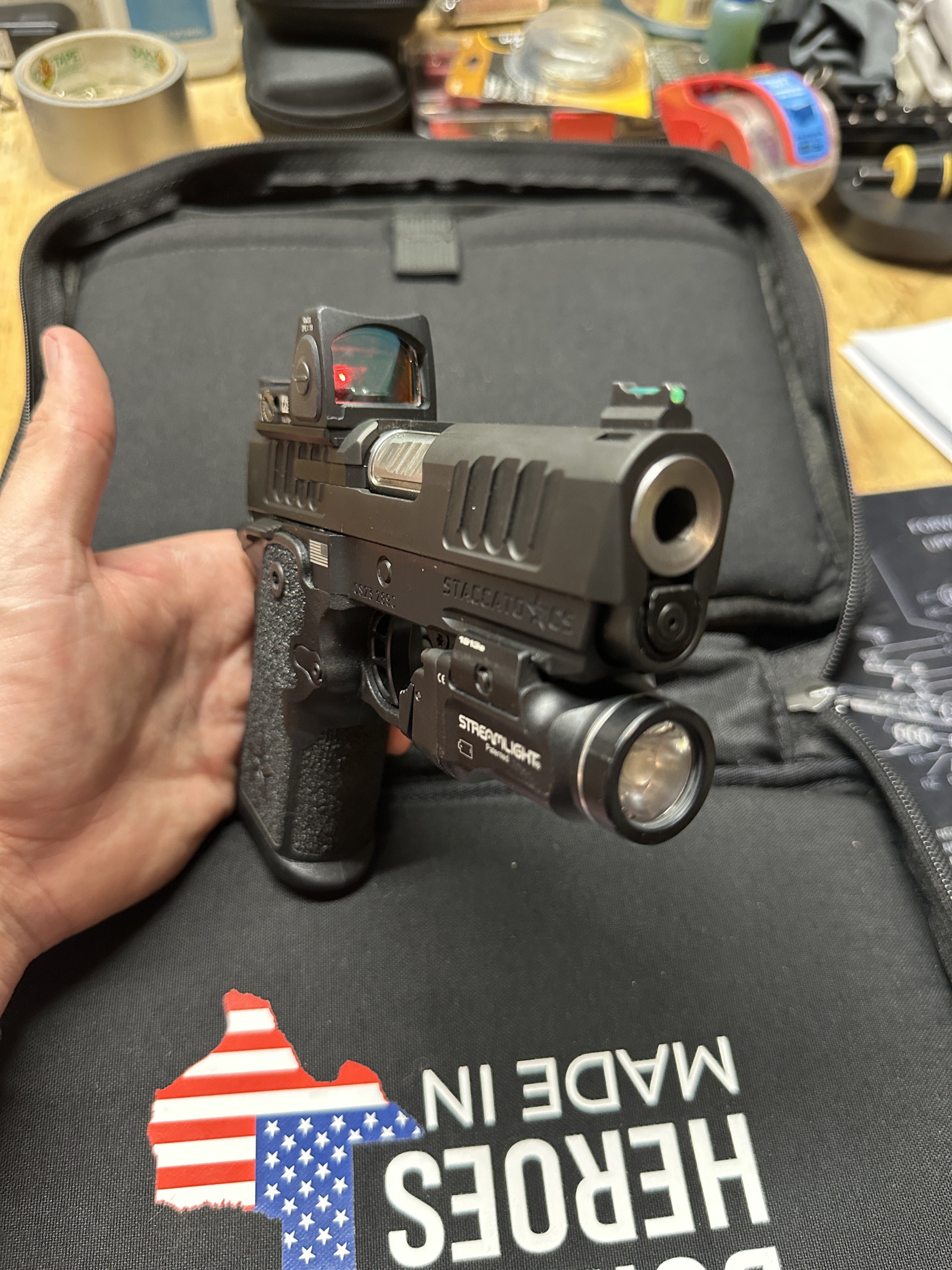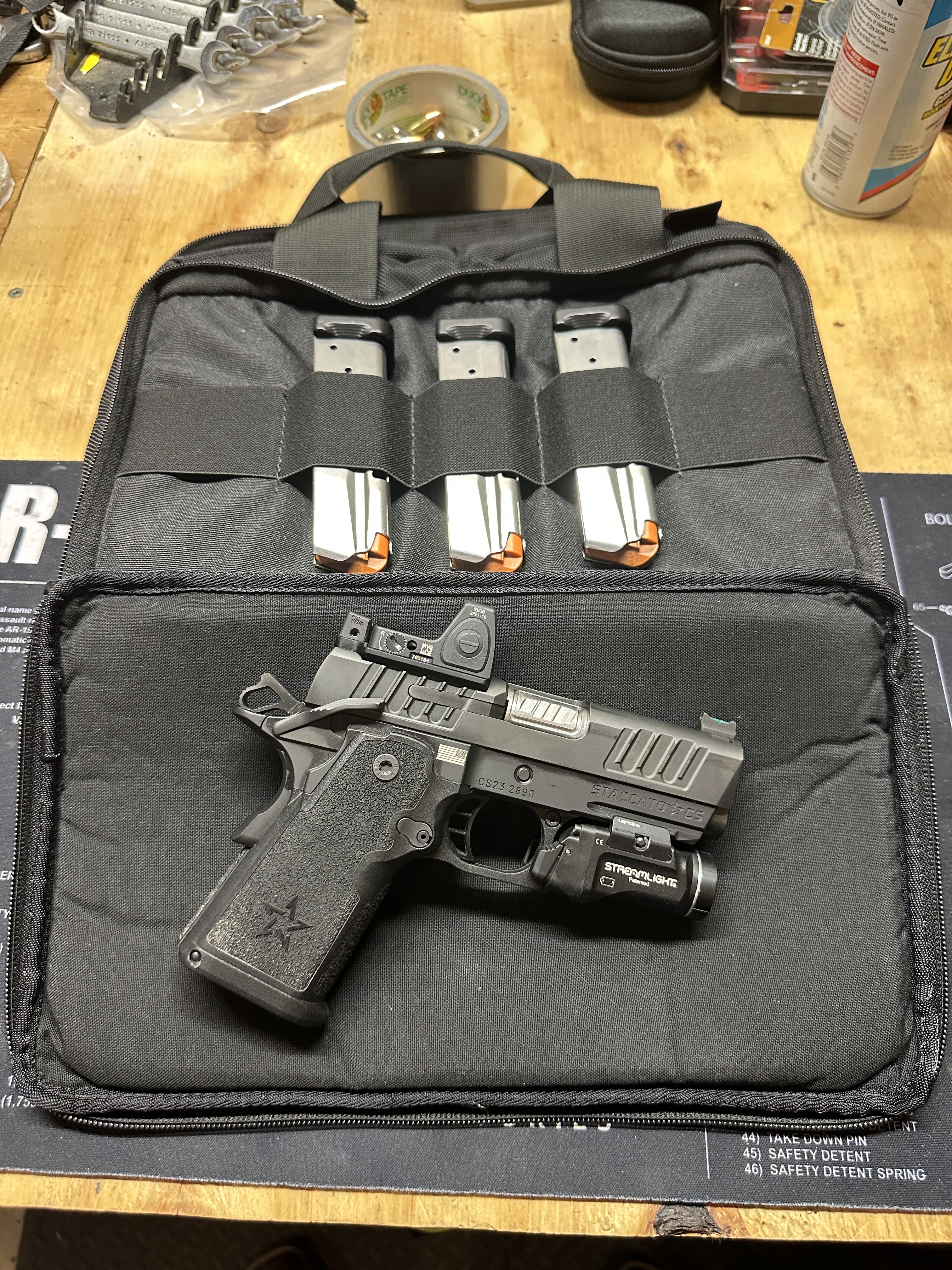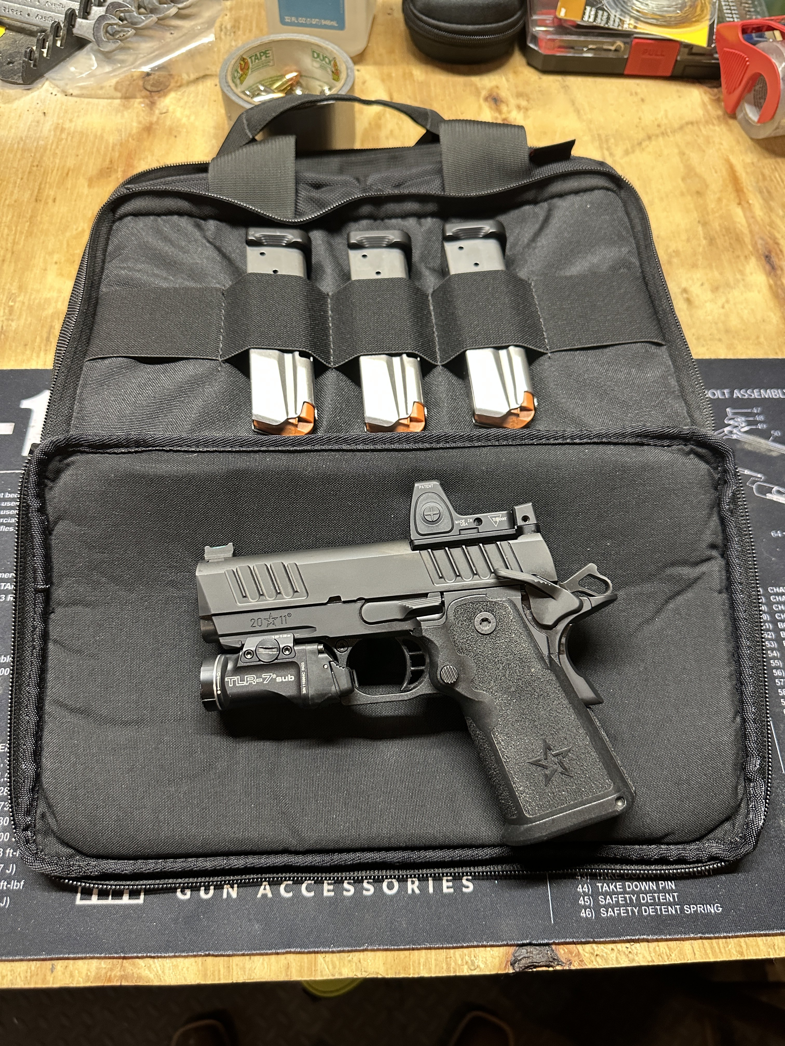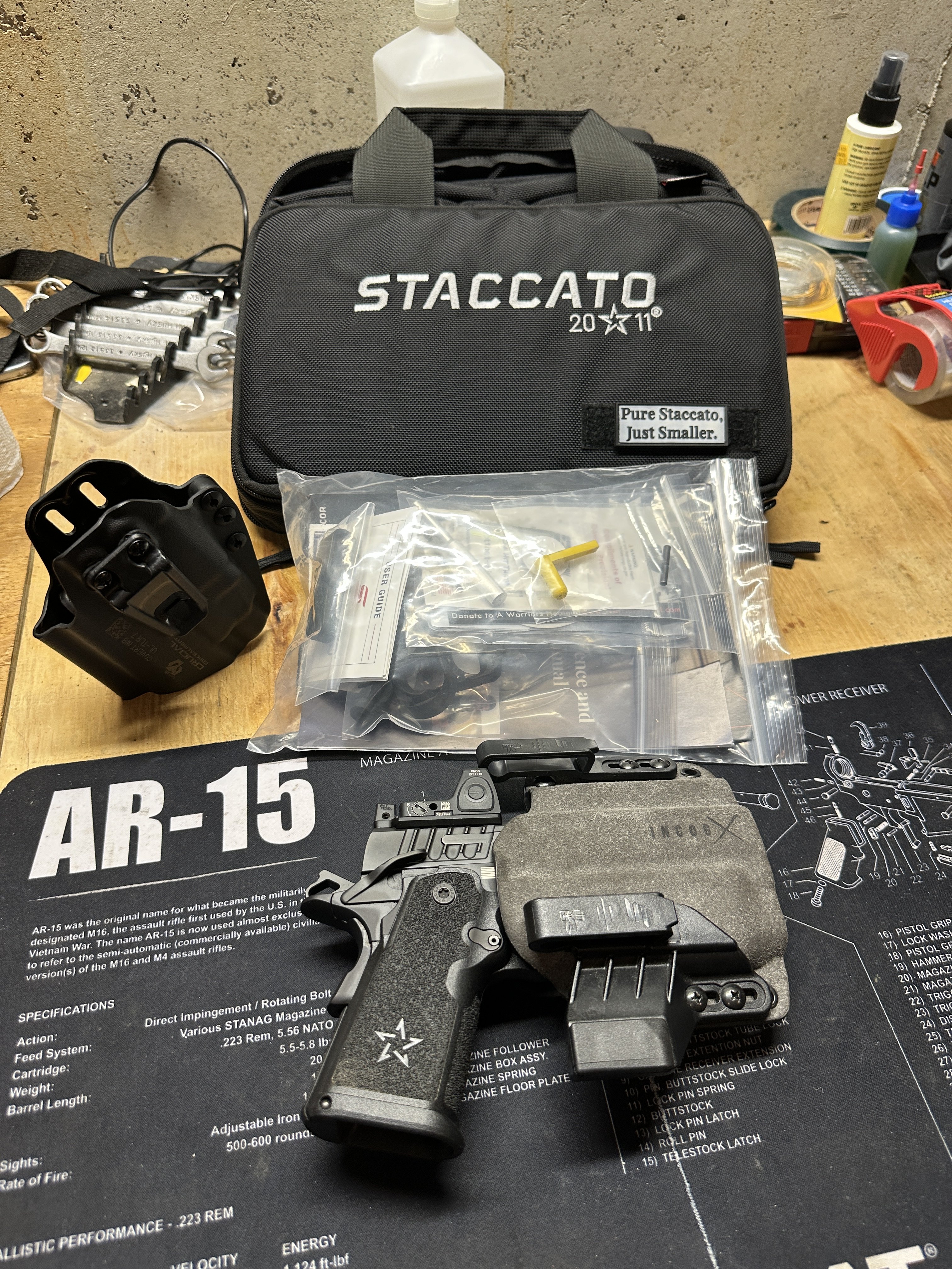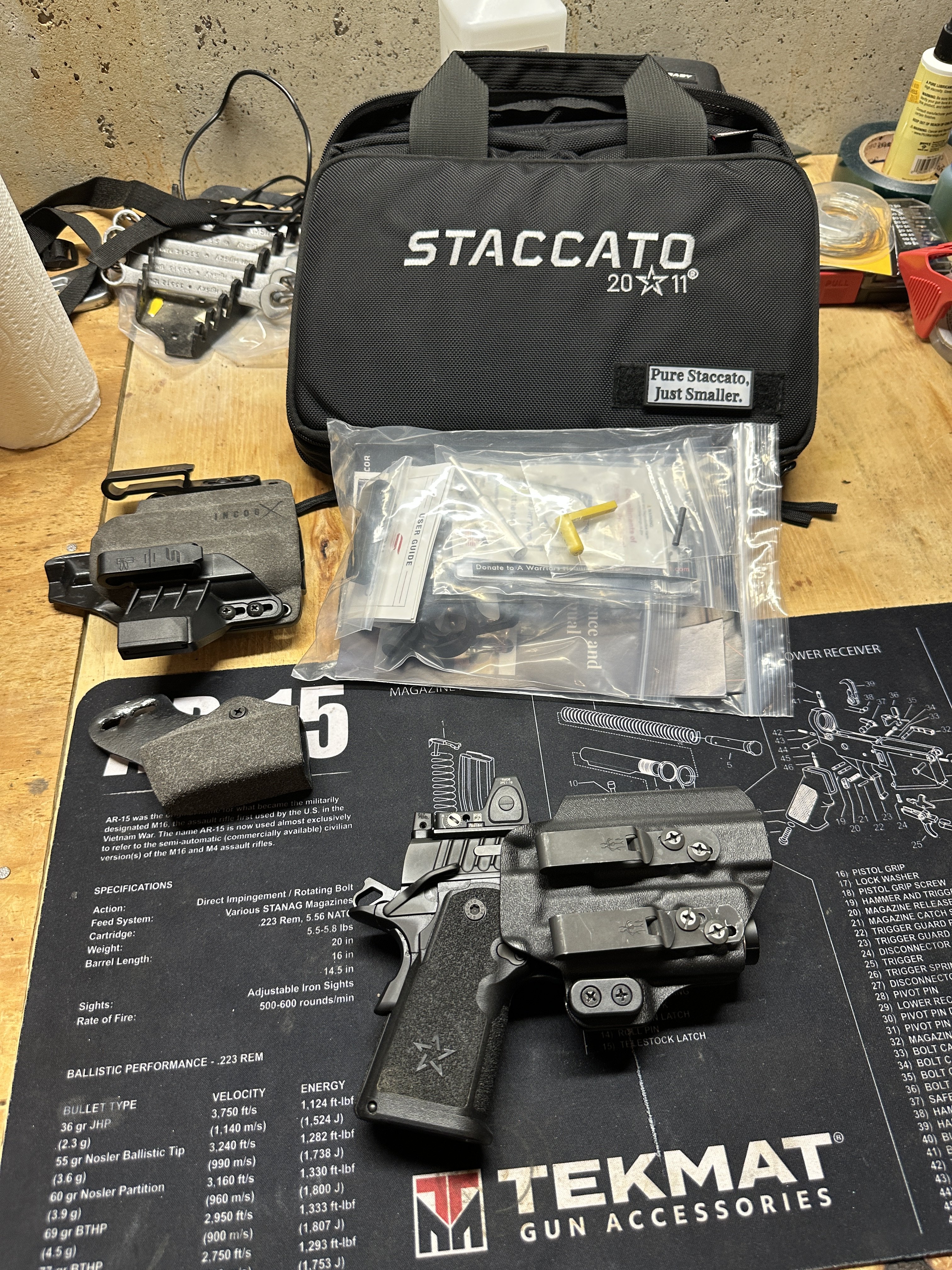 Trijicon RMR, Streamlight TLR-7 sub, 2 iwb holsters specific for the CS w/ the TLR-7, and 3 Staccato 16 rd mags.