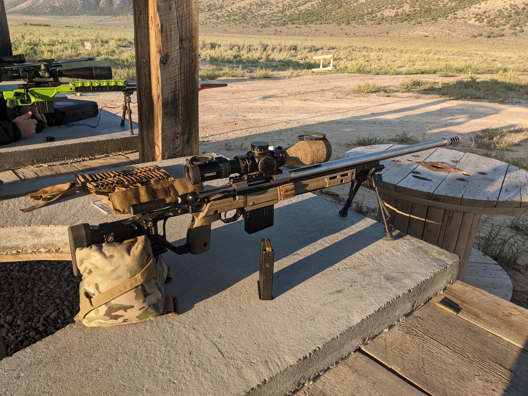 I'm running a 20 MOA rail. The scope is on a Masterpiece Arms, side folder, switch lug, M24 profile, in 6.5 CM.