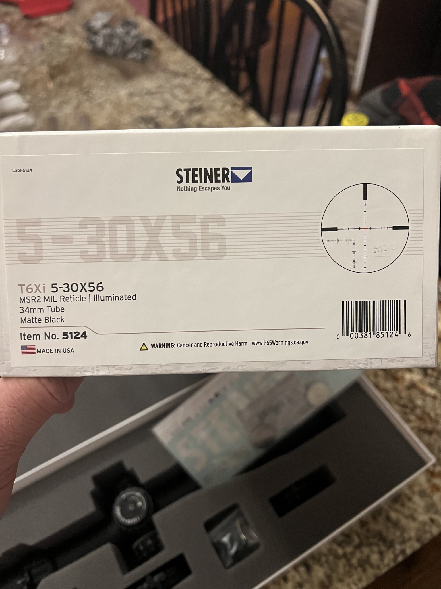 Selling a like new in box T6xi 5-30x56 with MSR-2 reticle. This scope has been mounted but has no marks whatsoever.