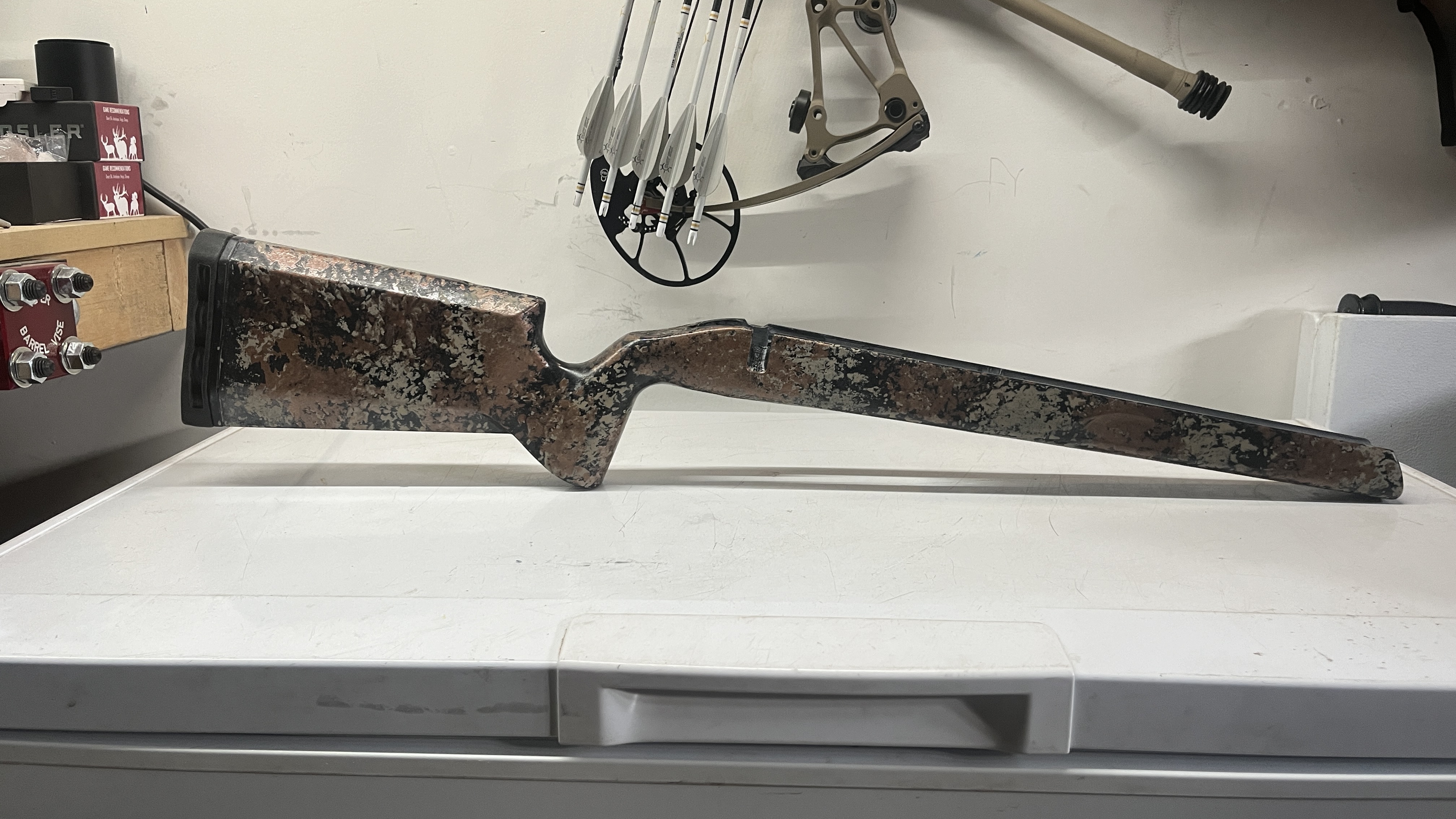Stocky’s VG2 with Howa 1500 LA action inlet. It was also inletted for an Atlasworx DBM so when used can accept ACIS mags. The stock Howa hinged floor plate also fits. Custom paint I did myself.