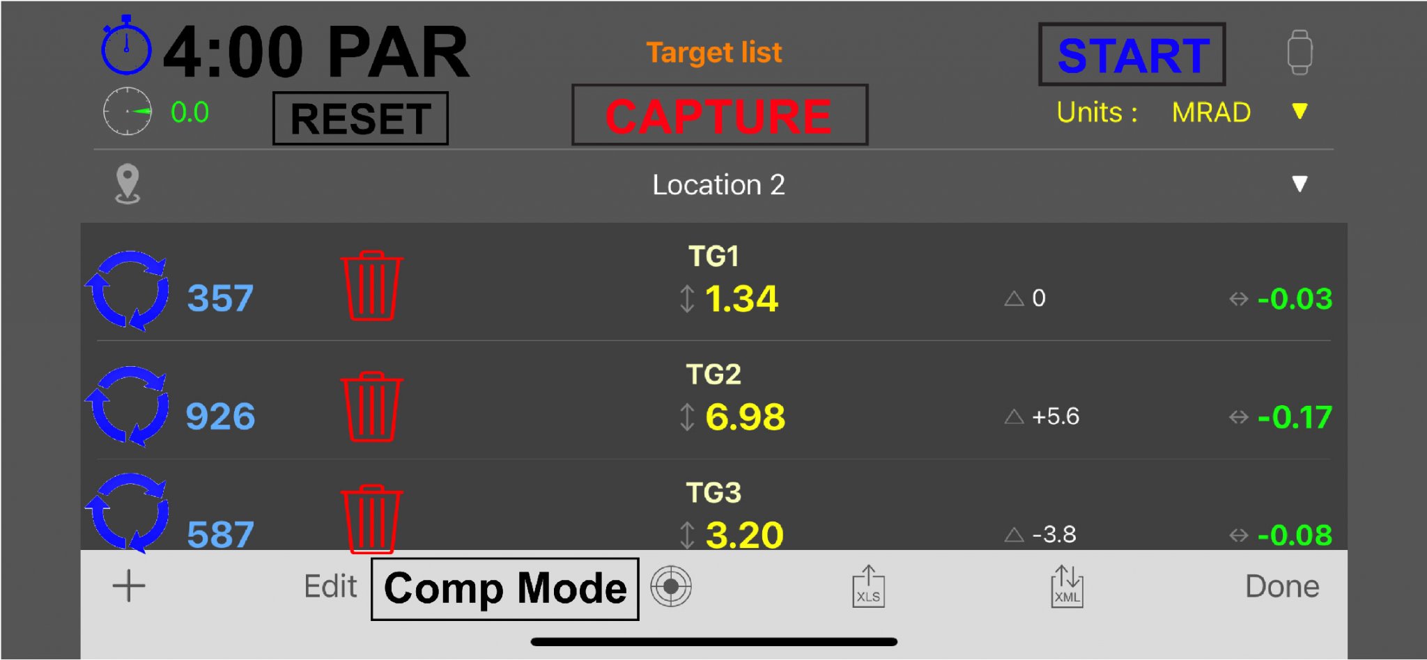 - For each target added to the target list, there will be two buttons…One to recapture that target’s range